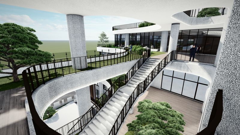 Our project breaks away from the typical factory design and incorporates the concept of natural greenery and environmental friendliness. This transforms the building into more than just a factory - it becomes a local ecological jungle that promotes biodiversity, reduces environmental hazards, and supports sustainable development and the public well-being. Additionally, we drew inspiration from the local river and port's history and culture, as well as the company's core product packaging, to design the exterior of the building.