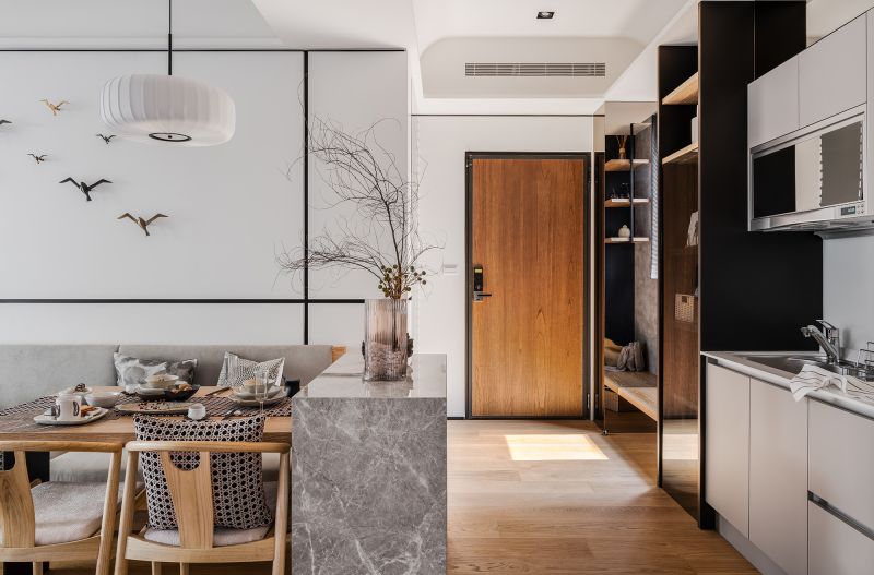 The living space should be free and flexible to meet the diverse needs of the residents. This interior design planning project is a residence with a total living area of approximately 50 square meters. Through the designers' resourceful planning and exquisite layout configuration, the space is full of surprises and possibilities. By planning an open space design and well-executed organization, the designer has maintained each area's functionality while defining the sense of division.