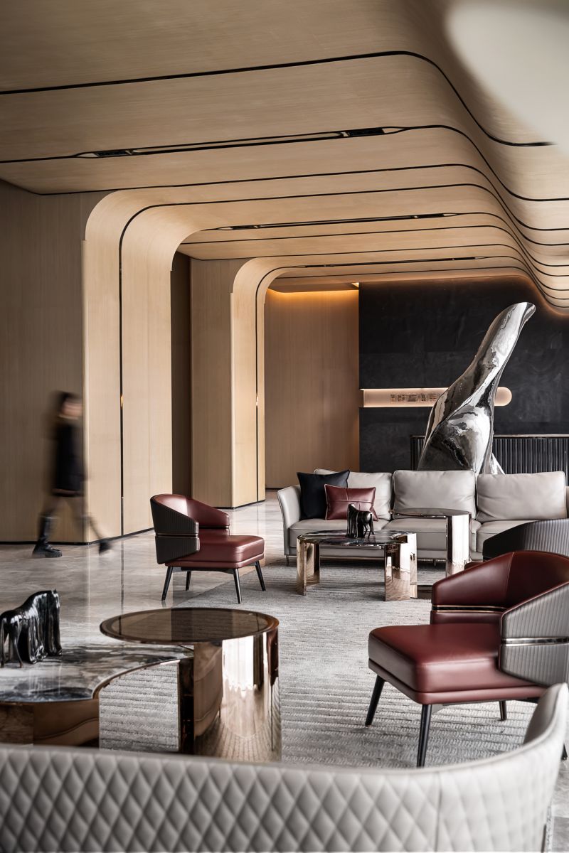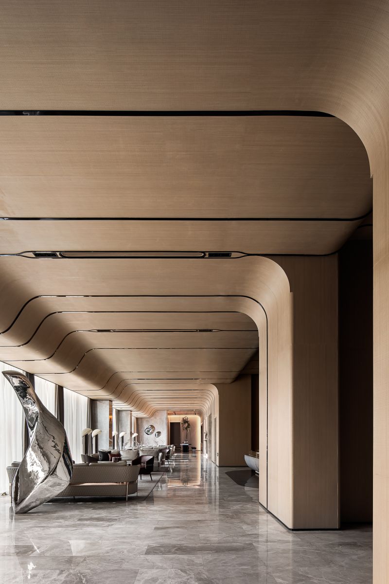 The project is situated in close proximity to the river and boasts splendid views of the waterway. The design team has skillfully integrated the motifs of waves and currents into the design, forging a profound cultural link between the structure and the brand identity. The outcome is a spatial configuration that not only exudes artistic flair but also serves a practical purpose.