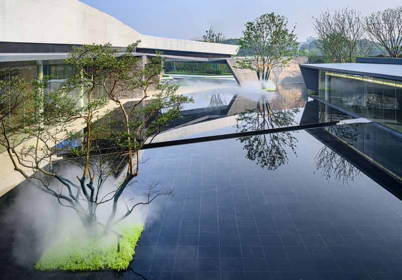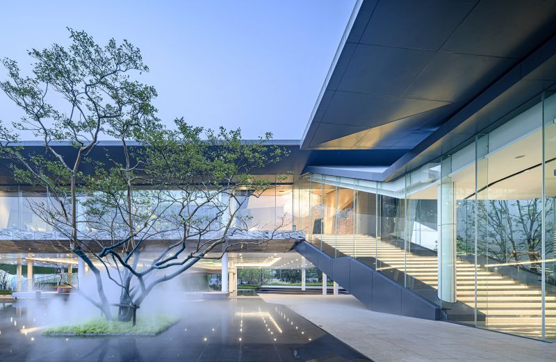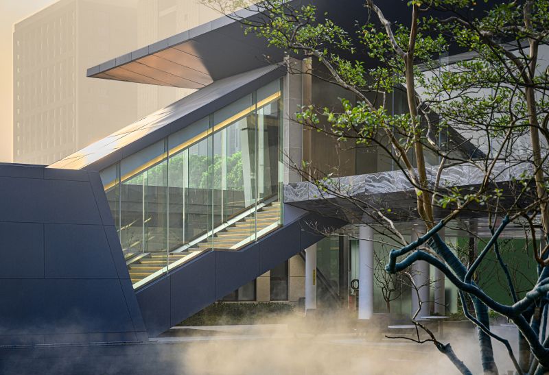 Designers use the advantages of geographical location to create an urban art experience center,which symbolizes the expectation for the citys future development.It is hoped that it will represent the development and take-off of the city in the Yangtze River basin,and lead the Jiangyin citizens to witness the leap of the city.Therefore it is named as the"Flying”Looking at the whole building,the design of the structure is like a pair of flying wings,full of power and rhythm.The whole design concept revolves around the“flying over the water surface”