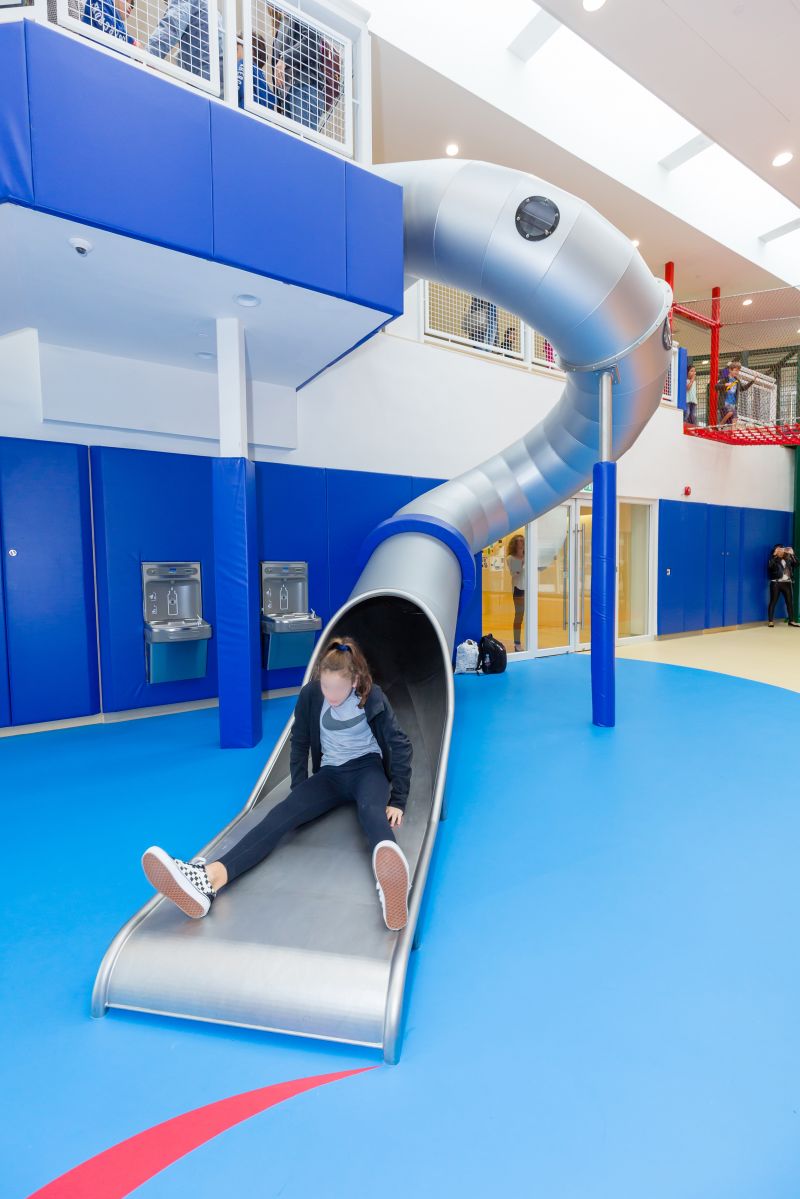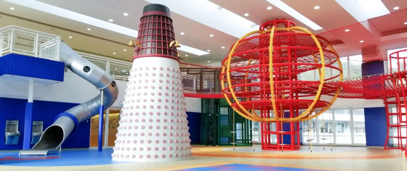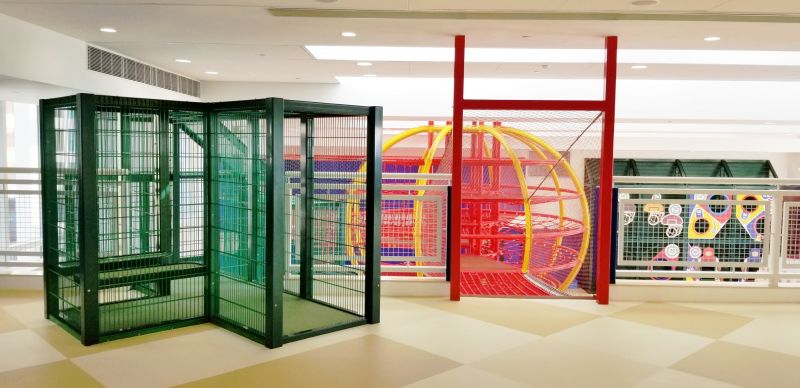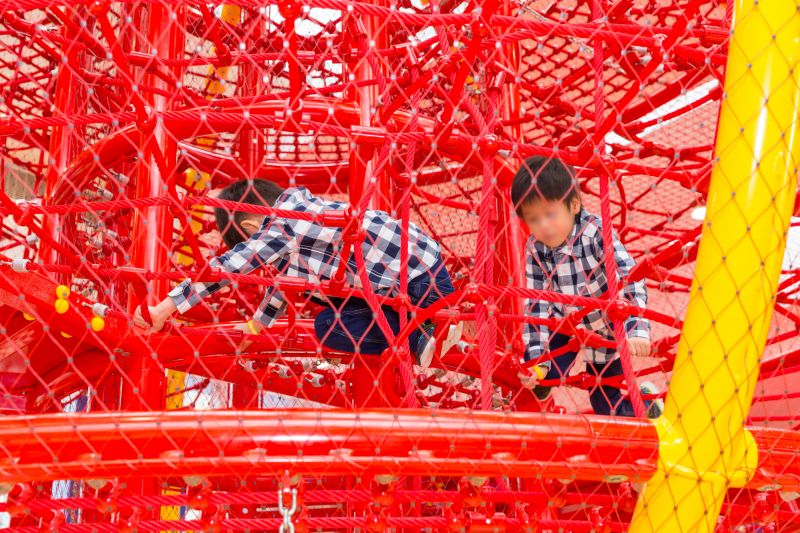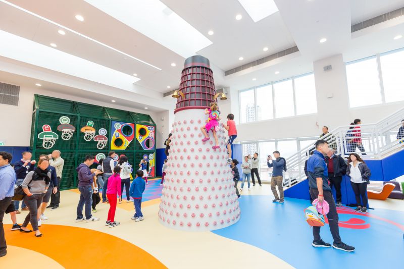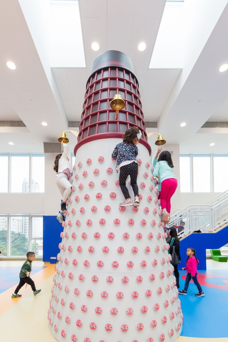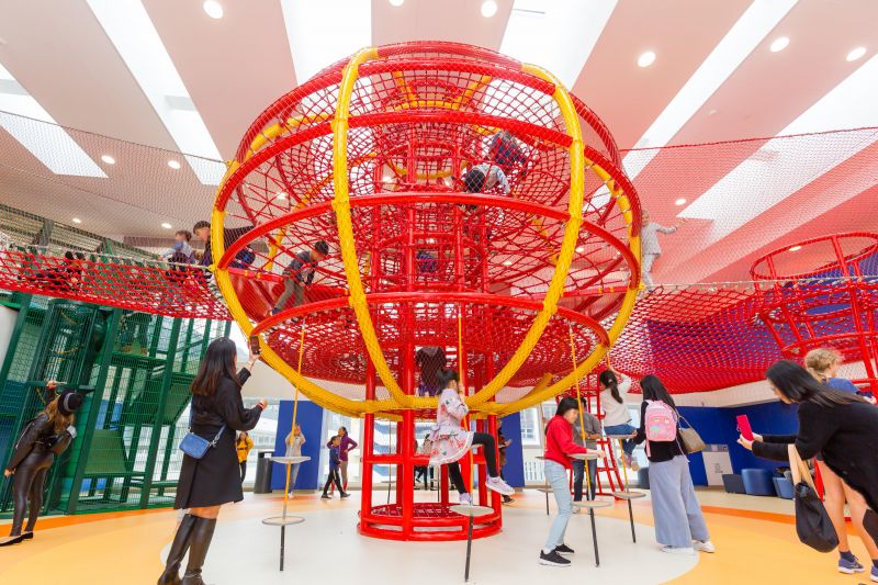 The Lantern Playground at Hong Kong International School merged the elements of Hong Kong's traditional culture with exciting climbing play and various play values. It is tailor-made for upper primary students. The most attractive play equipment in the playground is the 6.3 meters high Chinese Lantern-shaped climber. It contains rope play, hammocks, net bridge, which provide an excellent climbing challenge for children. The Bun Tower next to the Lantern Climber is imitating the famous Bun Scrambling Contest in Hong Kong. Students can race against each other on it.