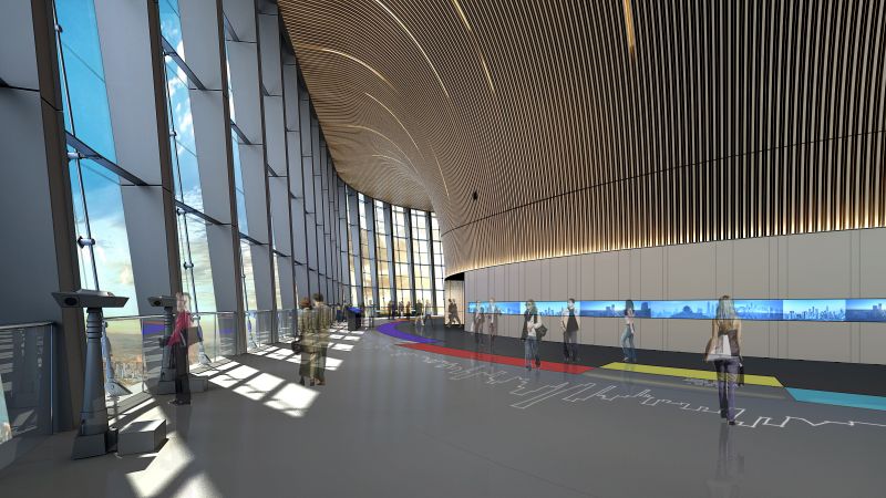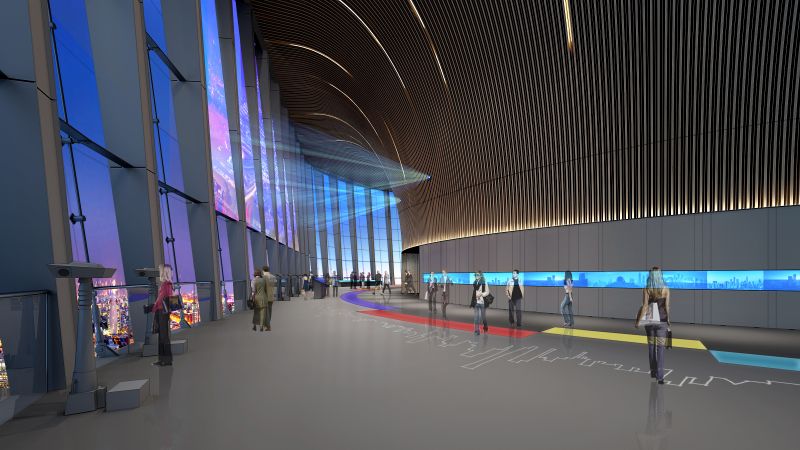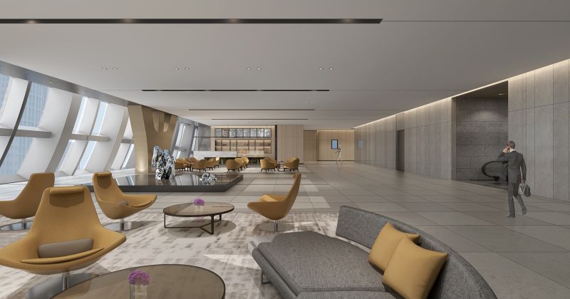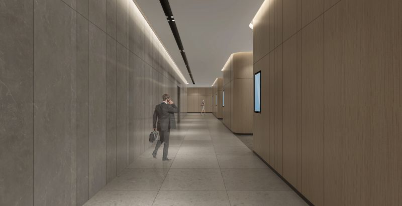 Interior design continues the concept of "respect" in architecture. The lobby is the base of "Zun". Starting from the function, the overall space design, with the theme of "human" space experience, annotates the proper temperament and appearance of modern office space under the classical artistic conception of "respect" in concise and clear language, which makes people feel the spirit of traditional culture contained in the modern space context. The top-level sightseeing floor responds to the concept of architectural design, and the image processing echoes with the beginning and end of the lob