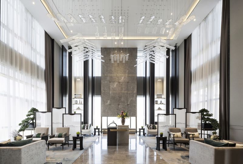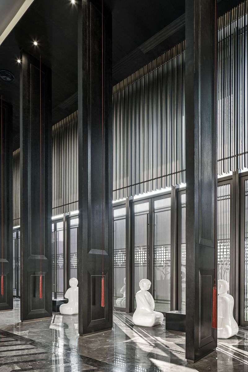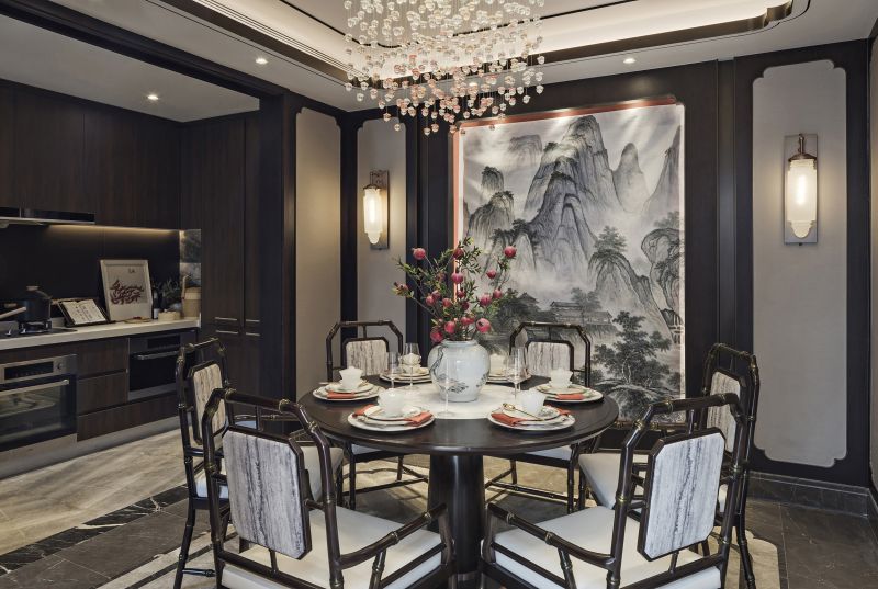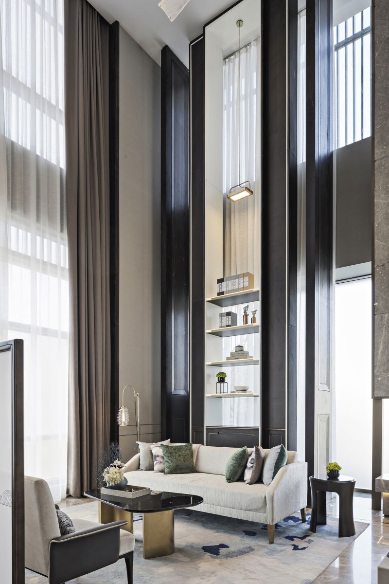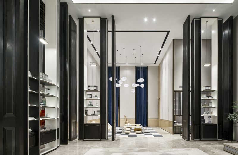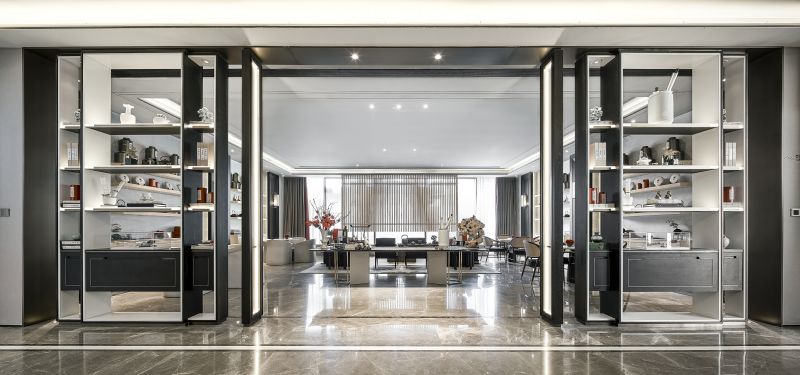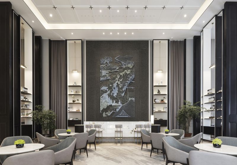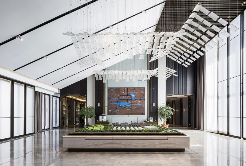 Extending the building characteristics of Tanyuan, the interior design of Tanyuan sales center strives to create a reading space experience similar to private study room, which has the warmth and relaxation of home and the elegant commercial atmosphere for negotiation.With the modern and oriental design concept, the project combined the local characteristic architectural style and incorporated oriental traditional architectural symbols to enrich the connotation of interior design.Restrained palette of black, white and gray was adopted in the overall space, forming an elegant flair.