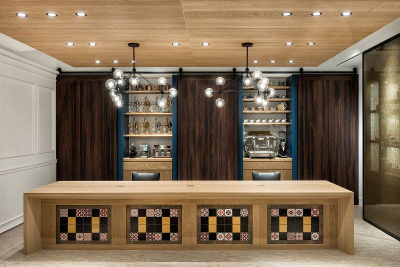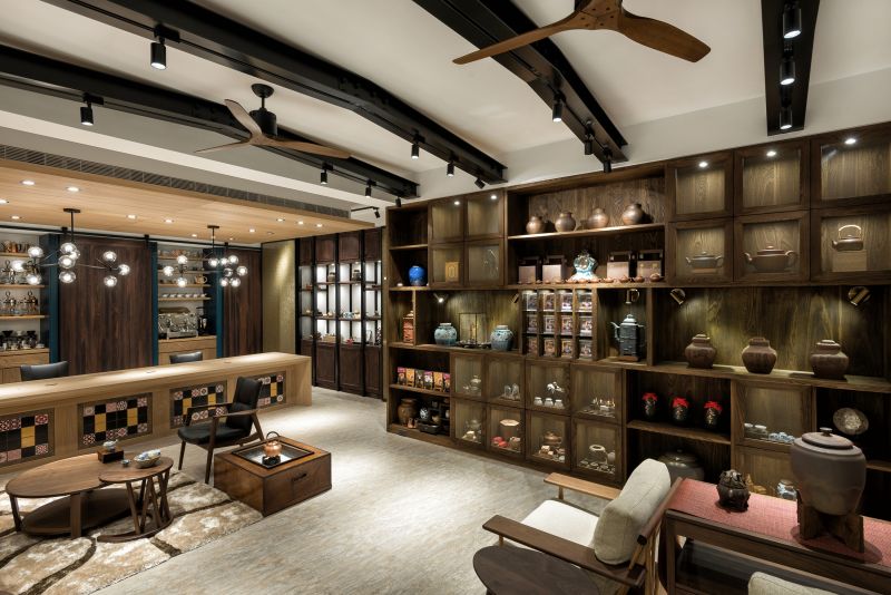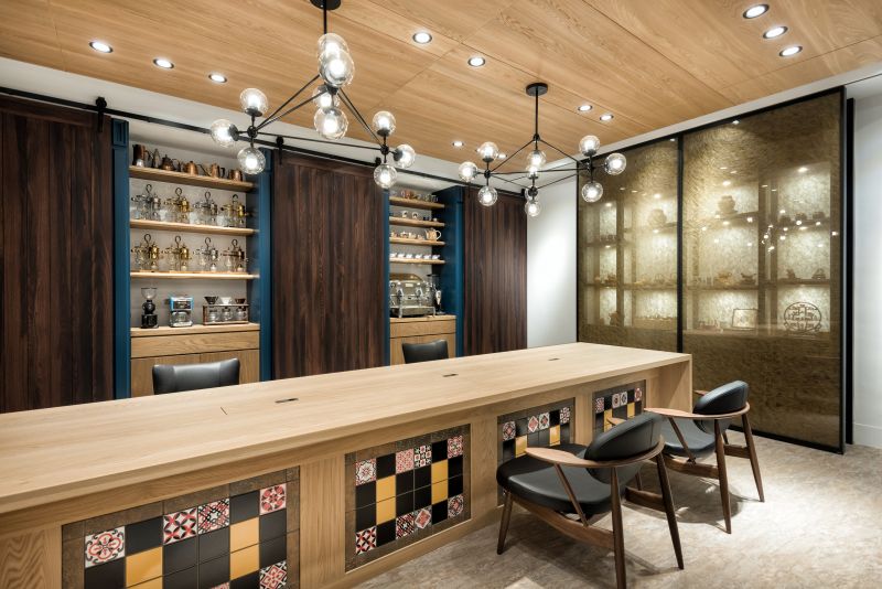 Regard to the space is a combination of a classical tea house and a modern coffee shop, the design team makes use of varied materials, such as iron pieces, tiles, and steel-brush wood veneers to bring about the British rural style within the original configuration; in addition, by way of the different ceiling patterns to set up the serving area and savoring area of an open concept. And the particular faux finish enriches the retro texture of the space, so that the customers can appreciate the serene atmosphere in the thick of the coffee and tea fragrant.
