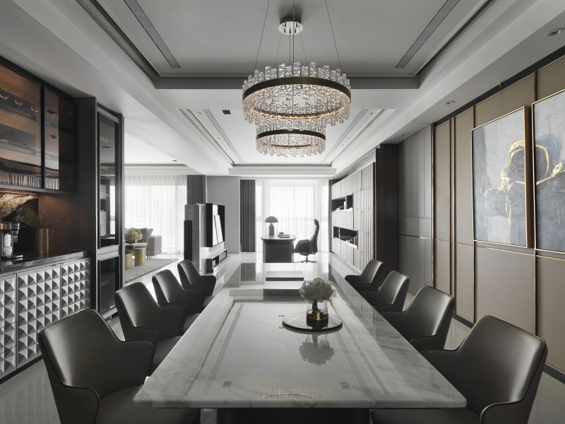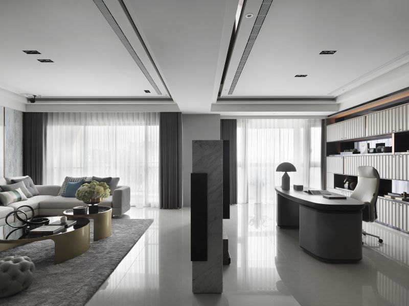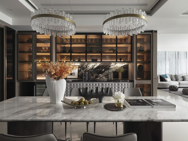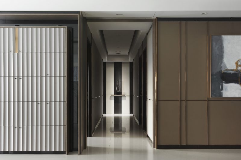 As the design starting point, the designers take into account the elegant life attitude and exquisite interests and preferences of the clients. In particular, the team merges the professional image of the female client on art work with the space. The team sophisticatedly applies flowing lines and multiple materials, presenting the natural texture and creating a modern aesthetic style. The designers not only emphasize the establishment of beauty and artistry in residence, but also adhere to the original intention of "people-oriented", so a functional and eco-friendly environment is constructed.