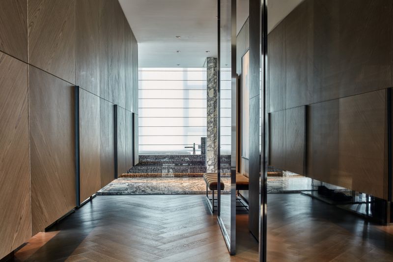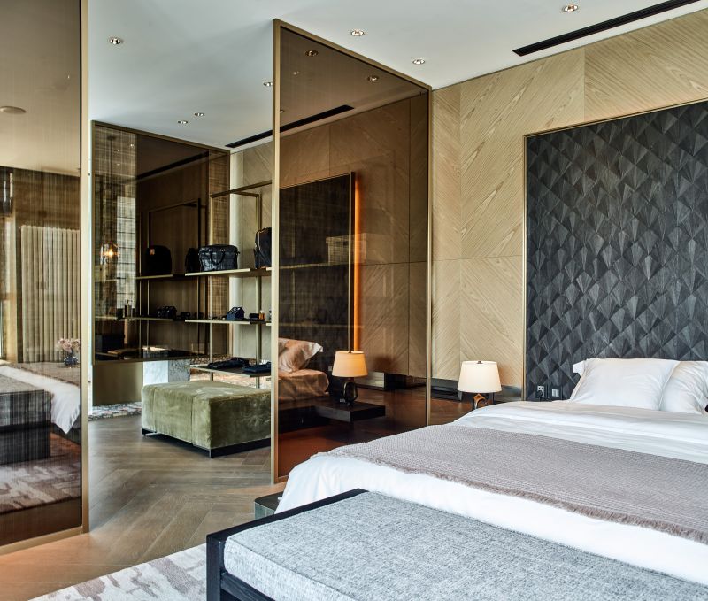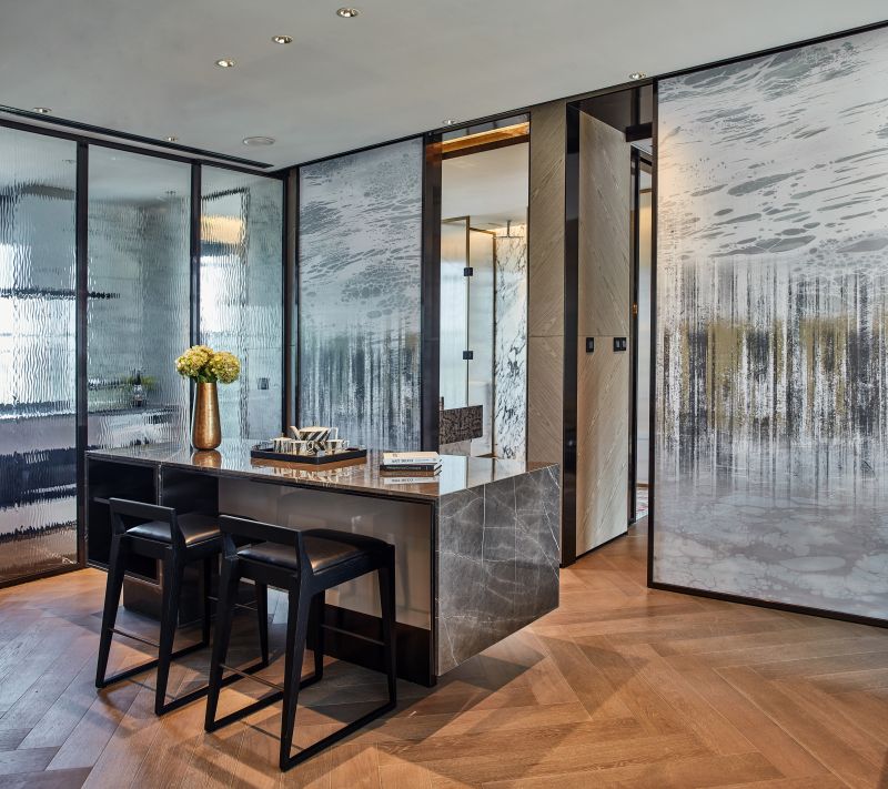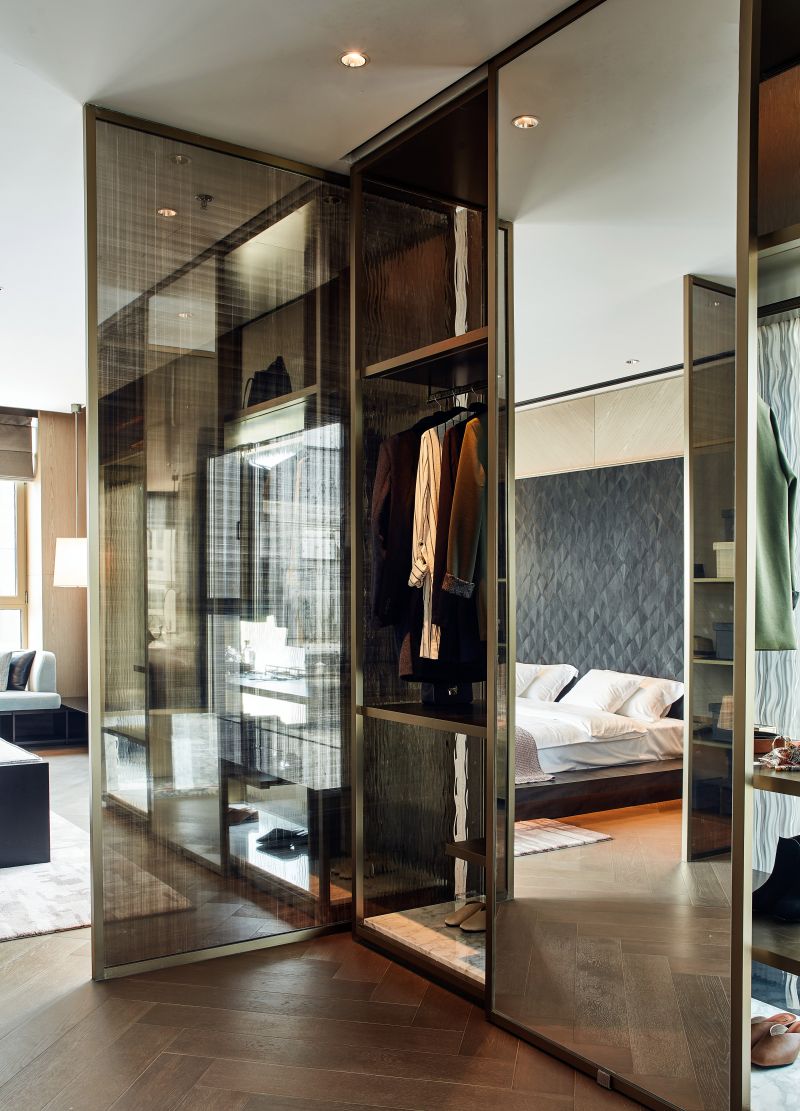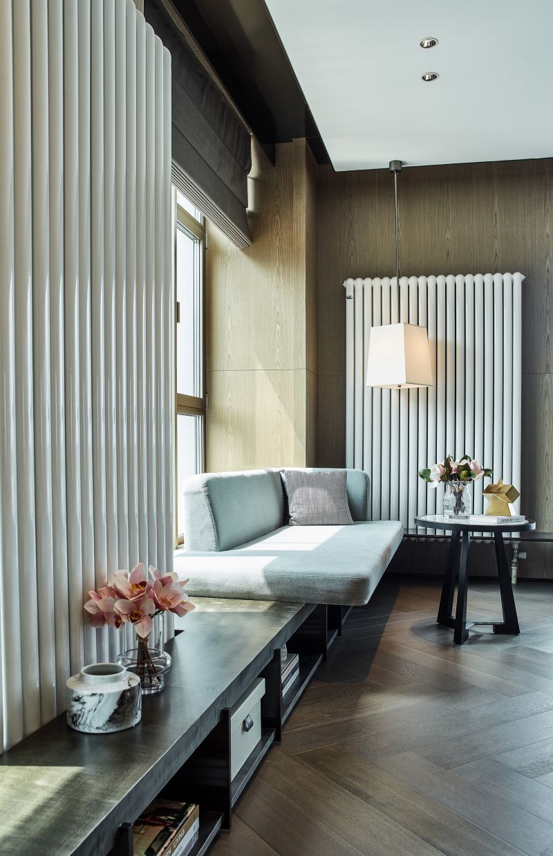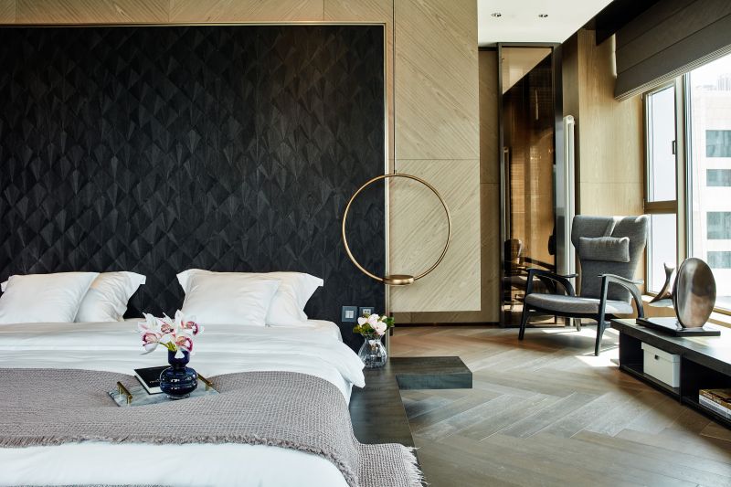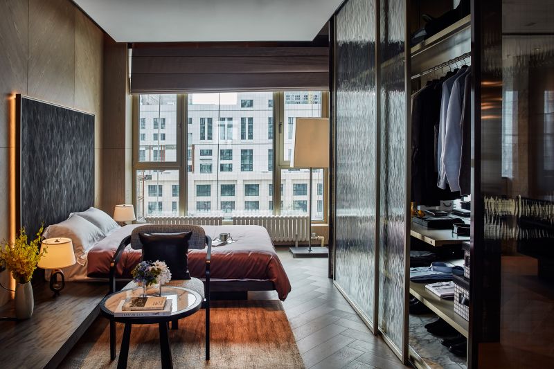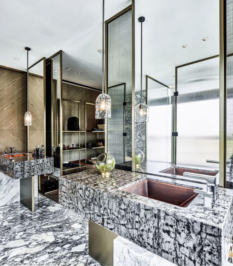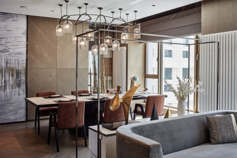 The apartment located in a new developing district with galleries and cultural venue surrounded. To attract new generations having their own taste of luxury, goldish metal and crystal is not only statement of elegant and grand. Art pieces and details presents the self-cultivation. Living room represents the heart of apartment, the collection of artistic furniture creates a different lifestyle with good eyes. Warm and welcome dining area invites guests to enjoy the space. However, strong statement of bathroom architectural lines are pretending neglected.