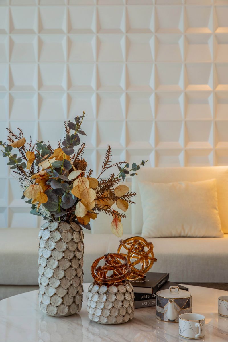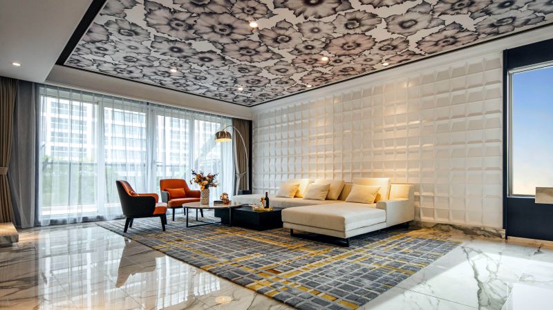 Contrast of dark grey and white in interior finishing shows elegant charm.