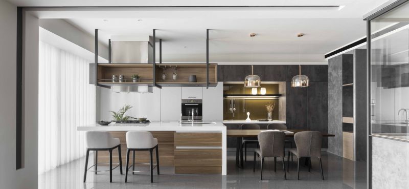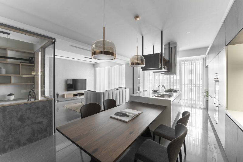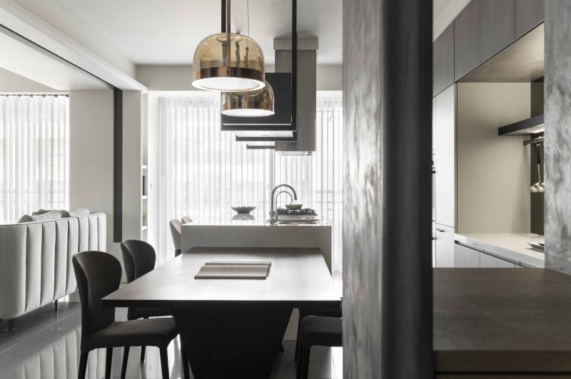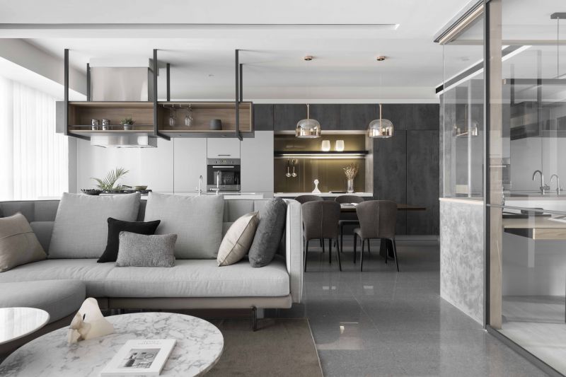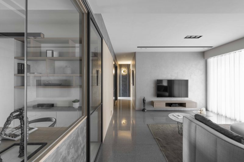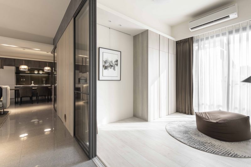 With sufficient daylight, the designer applies transparent materials and adopts different materials in similar tone in the space. Glass elements are interspersed, increasing lighting effect and showing a penetrating and extended field. Moreover, grayscale colors is used from the floor, wall, to the ceiling as deployment, the designer also applies special metal coatings to create a low-convergence space color with the meticulous metallic light and rich texture. In the private area, the designer takes into account the clients' preferences, presenting a harmonious and heartwarming field.