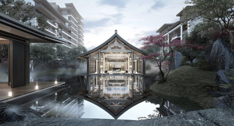 The architectural style is Chinese Zen style with far-reaching eaves. Part of the stone and wood decoration restore the rustic charm of Chinese-style houses, giving the building a natural and warm "touch". The exhibition area follows the ancient system and uses modern design techniques, which combines ancient and modern styles and enables people feel calm in the tranquility.