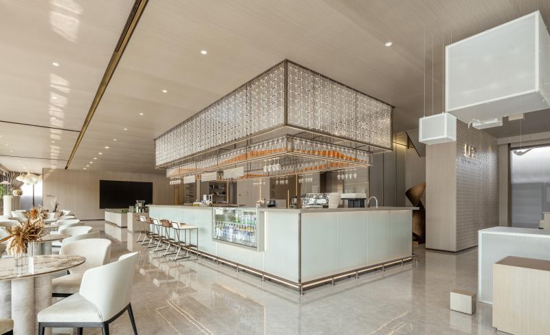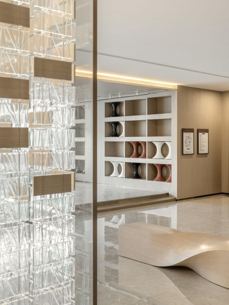 The design style of the project is modern and elegant.The use of lines reflects the modern life of the pursuit of simplicity.Soft decoration and the organic combination of the selection of abstract natural organic form organic, so that people can feel the natural atmosphere.Artificial and natural, original and delicate, clear and fuzzy coexist in this space.Bricks made of transparent glass, like a crystal house, are filled with a dreamy and romantic atmosphere in the city, revealing the wonders of modern technology.