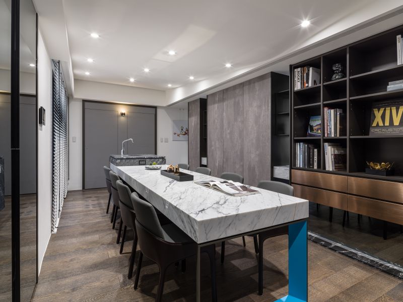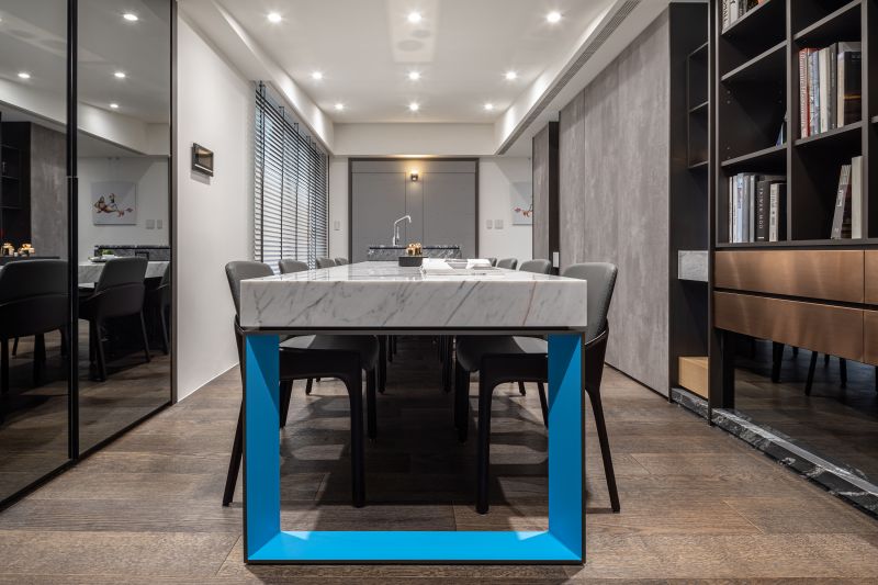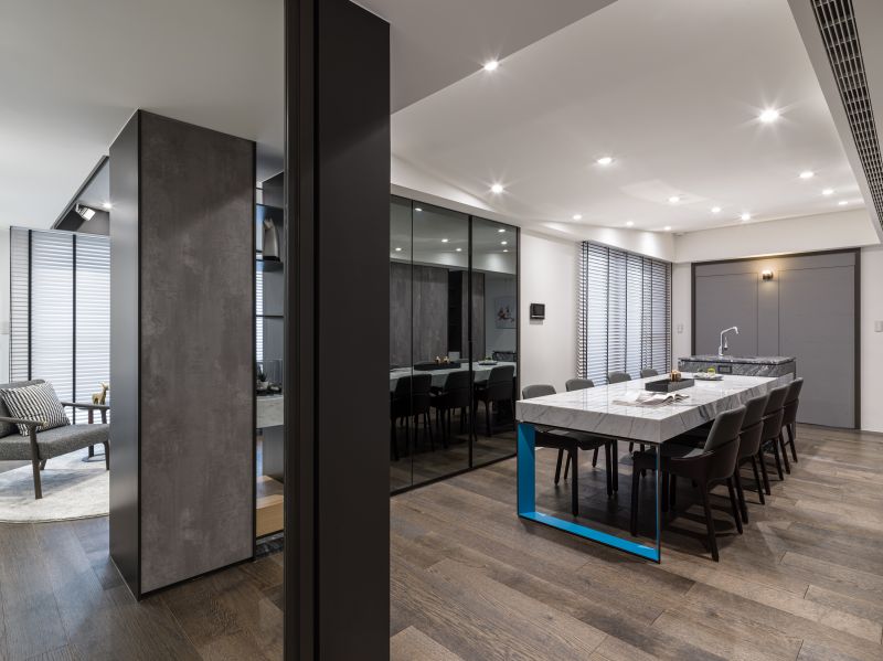 This is a renovation project of a vintage house. In view to challenge the open configuration, we transformed the base structure, moreover, modify the flow, and hence bring about excellent layout. The tray ceiling becomes a striking feature of the space. After discussion with the property owner, we set the contemporary style of the foundation, with the grey hue as the accent color, and make use of deep tinge as the secondary color, further, put a touch of bright color, as well helping each field to stand out the exclusive texture and personality.