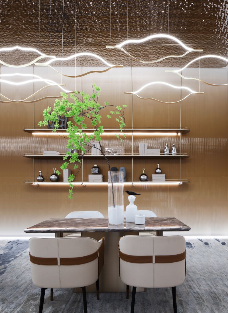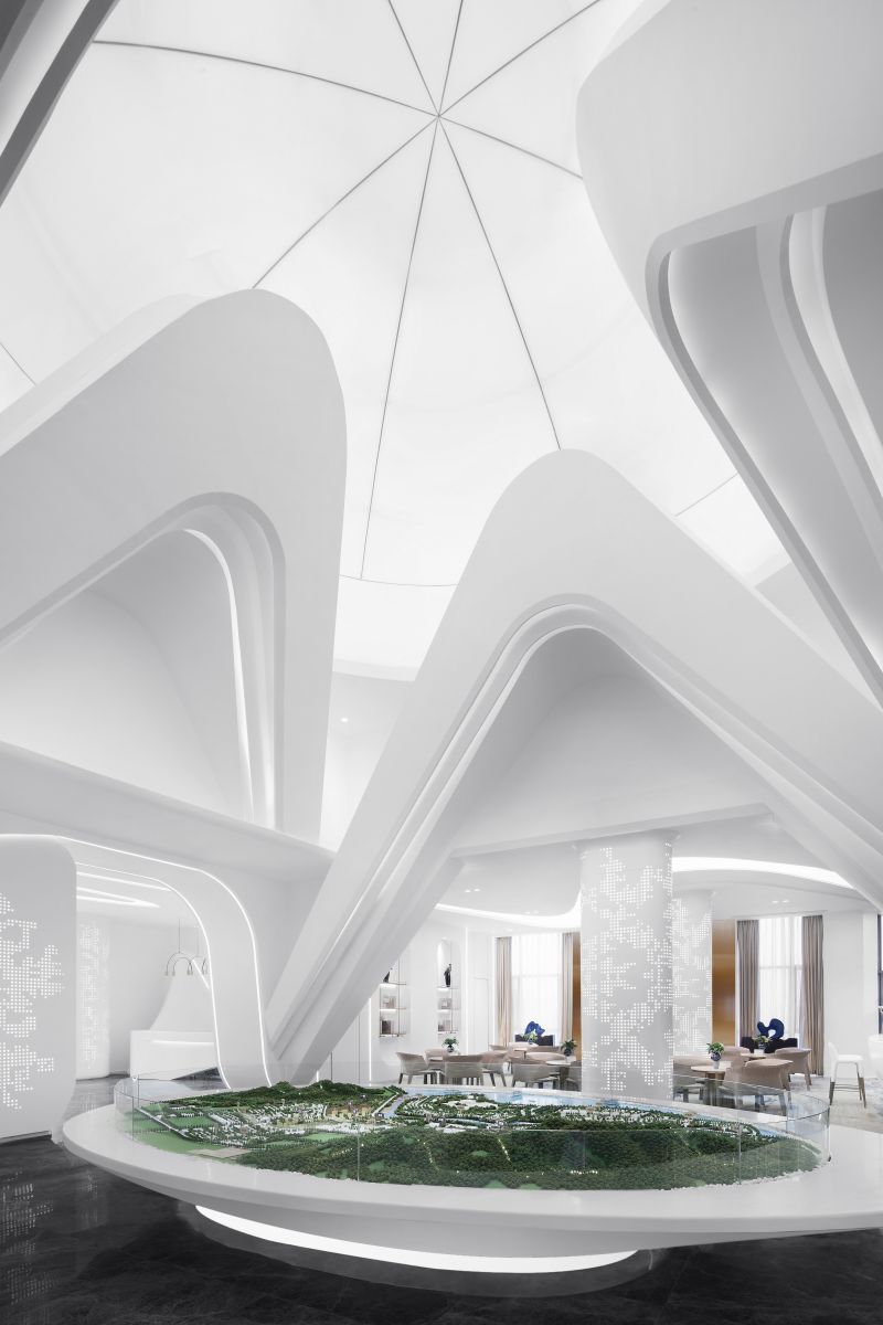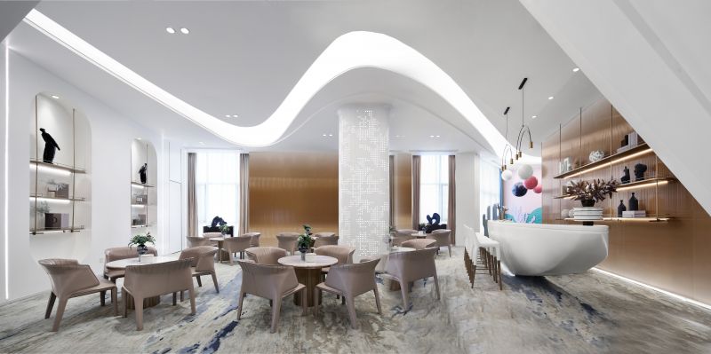 The overall concept takes flow curve as the main element, matches with white tone to extend the three-dimensional shape, and constructs according to the spatial function and demand, creating a concise and capable "future" space.