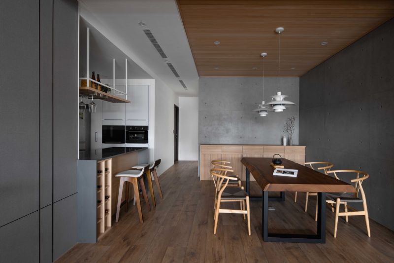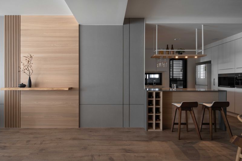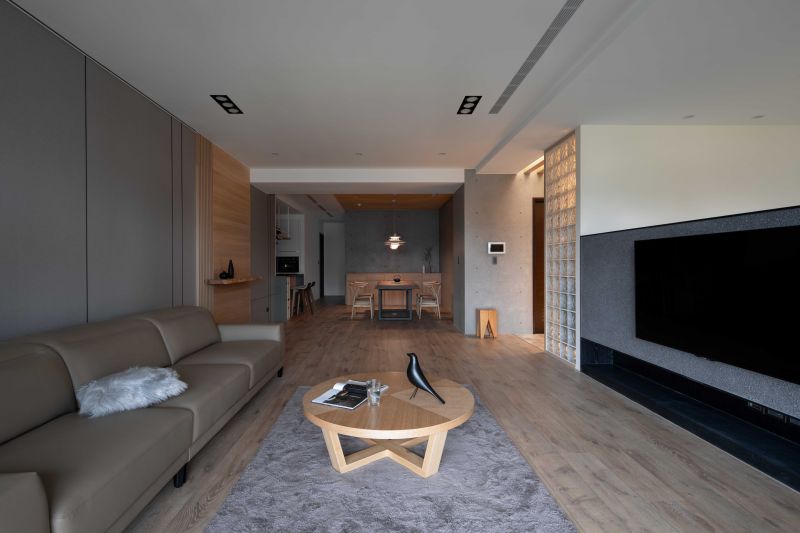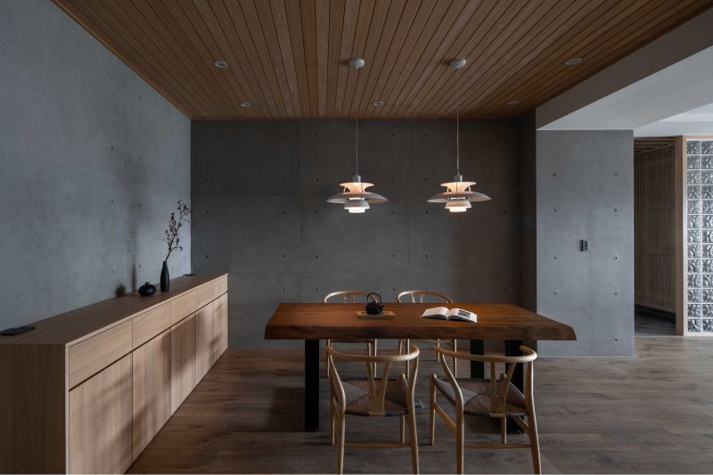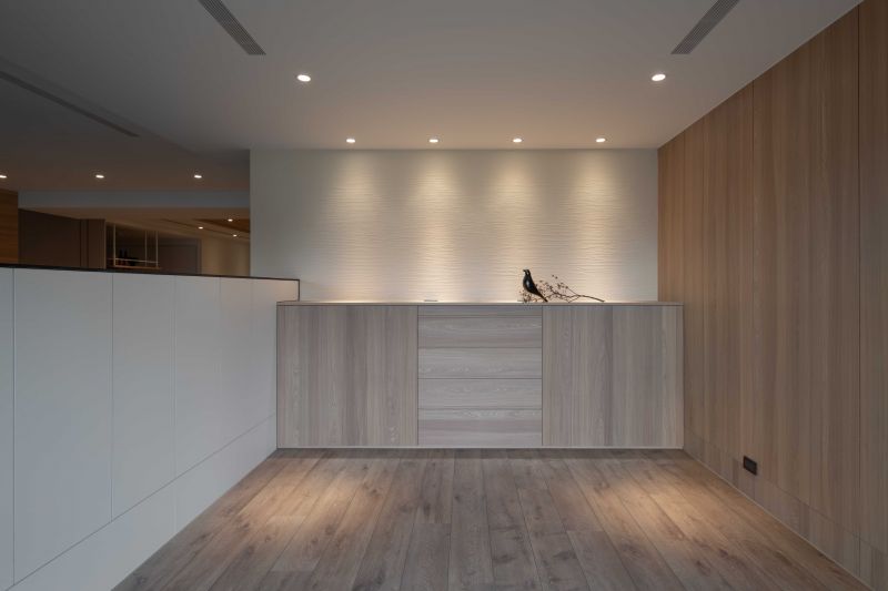 As this project is situated near Hsinchu Highspeed Rail Station, opposite a green park, the design team would like to bring the greenery into the interior of Japanese styling for a relaxing and meditative residence marrying Japanese Zen style and modernism with pure and humble materials giving rise to a serene and delicate spatial expression.