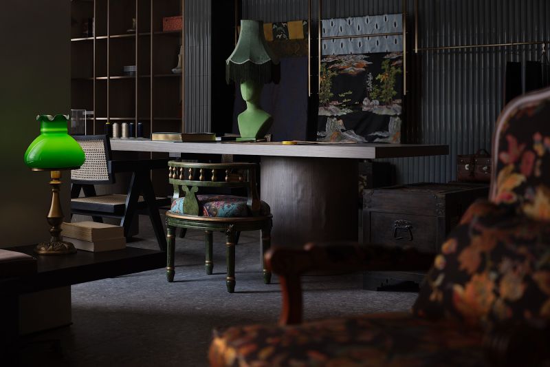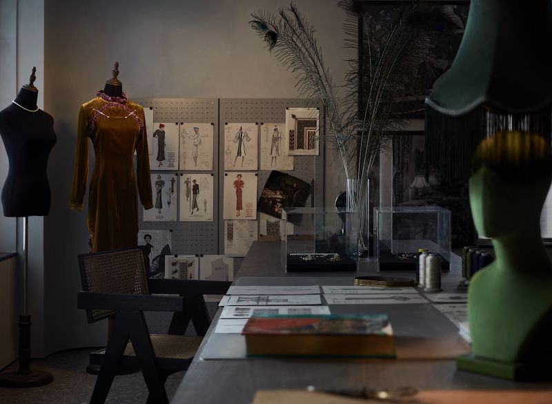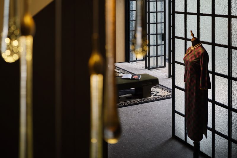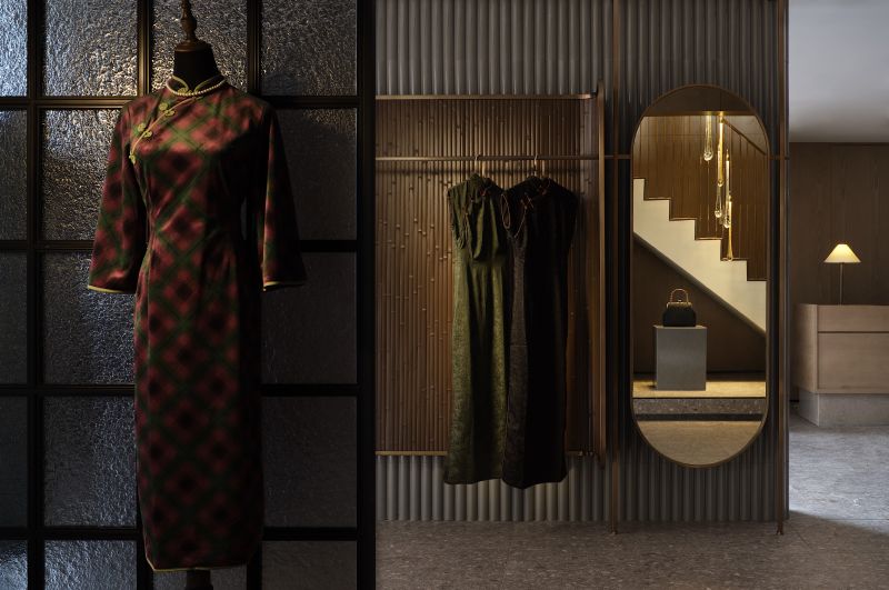 The workshop is in Poly • City Gather in Jiangmen City. The design team decorated the space as if they were designing a gorgeous cheongsam.