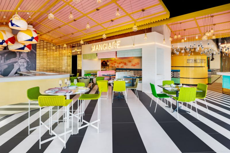 Torno Subito, dedicated to Worlds Best Chef Massimo Bottura, is an explosion of utterly beautiful reminiscence. Inspired by Massimo’s childhood memories of 1950s/60s Rimini, Italy, Torno Subito takes guests on a journey through bygone days through immersive experiences, cinematic expressions and nostalgic sentiments. In a demographic that has become somewhat saturated over recent years encompassing resembling concepts, Massimo’s first venture outside of Italy brings a playful charm to the heart of the desert through its distinctive storyline and truly unique interiors.