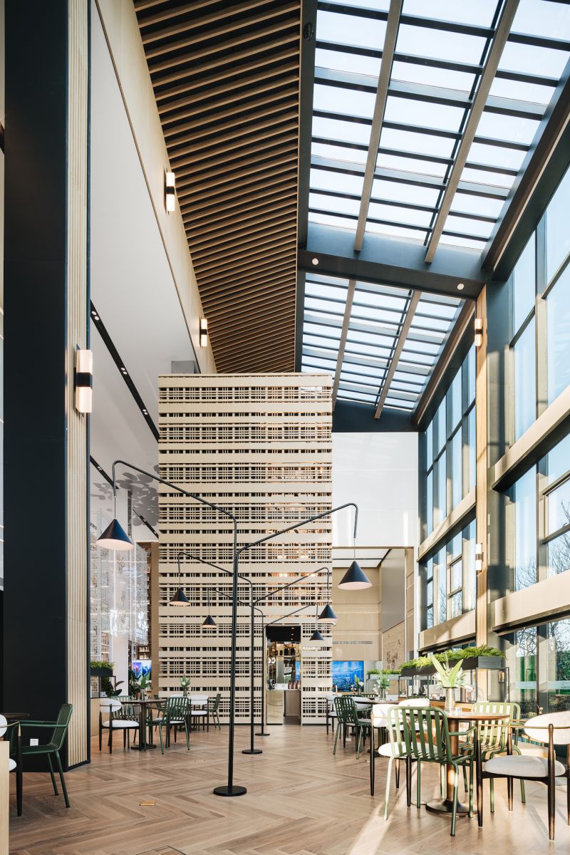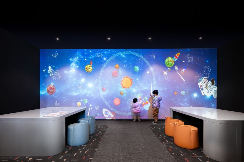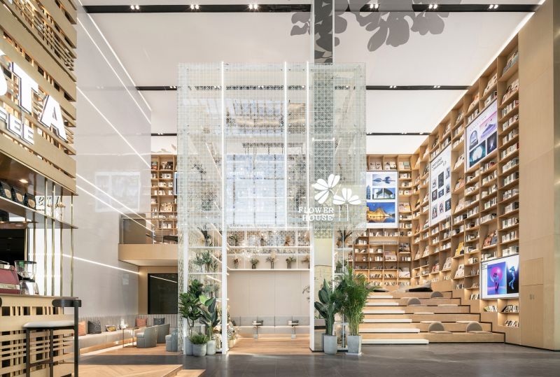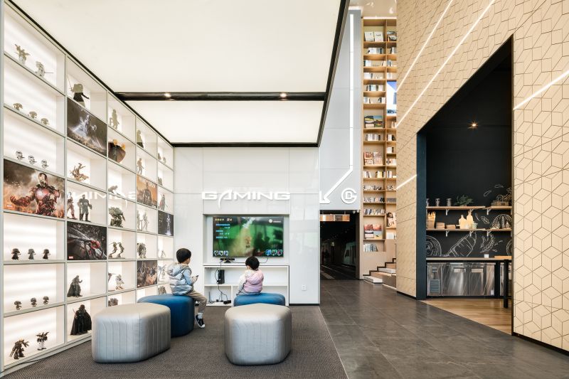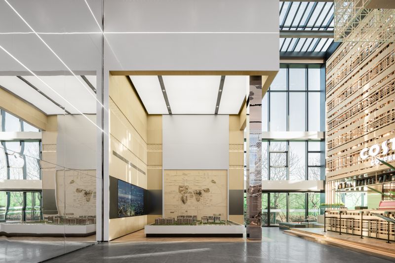 "Lifestyle pixels" as the design concept of the Sales Center of Overseas Huanyu Time Square, the net height of the large space is about 13m. In the layout, boxes representing life pixels are stacked together in three-dimensional space. Each box is implanted with a business form, forming a "box community" which integrates coffee bar, baking room, reading room, flower room, e-sports, sand table and children's playground. Let customers immerse themselves in different use scenarios to create exciting points of experience.