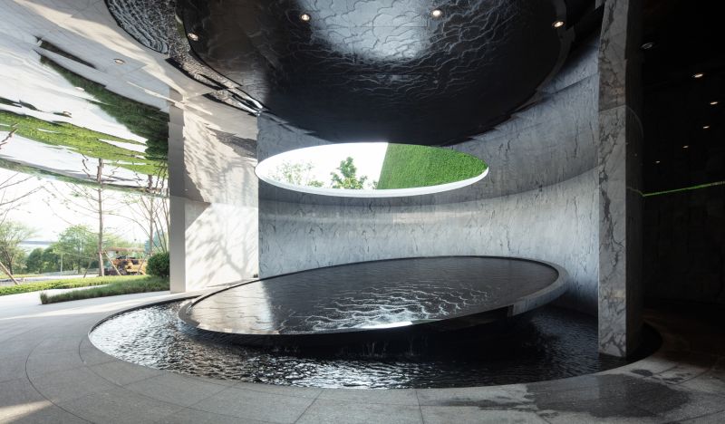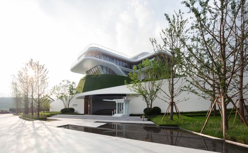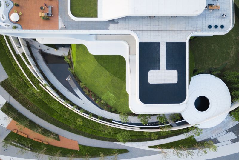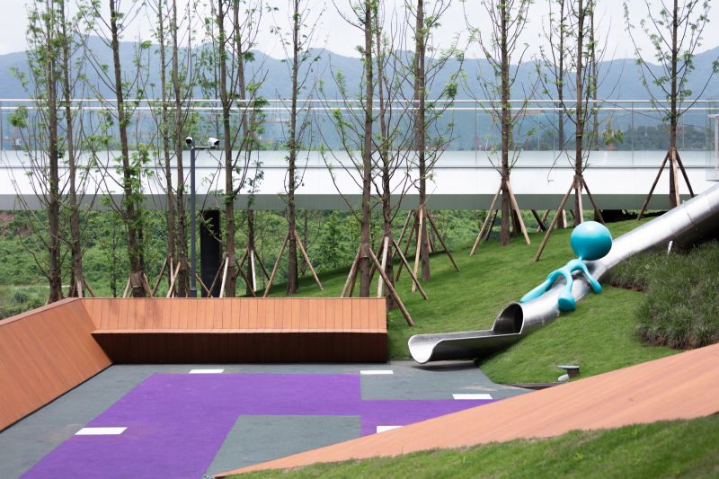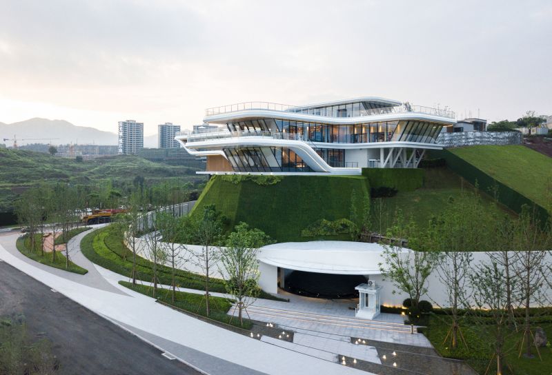 The project is located on the north bank of Jialing River, adjacent to the Colorful Riverside Park, with the top-quality of river scenery. There is a height difference of 18 meters between buildings and municipal roads. We skillfully turn this landscape challenge into advantages to better contrast the building and reflect its purity and tension.