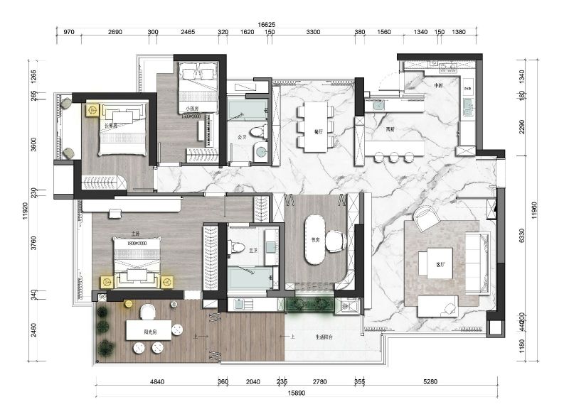 The design of the whole house is integrated with the characteristics of Chinese gardens, and the scenery changes step by step. The new Chinese style with oriental heritage is like an oasis, buffering the tension of the fast-paced city and creating an atmosphere of elegance and ancient charm.