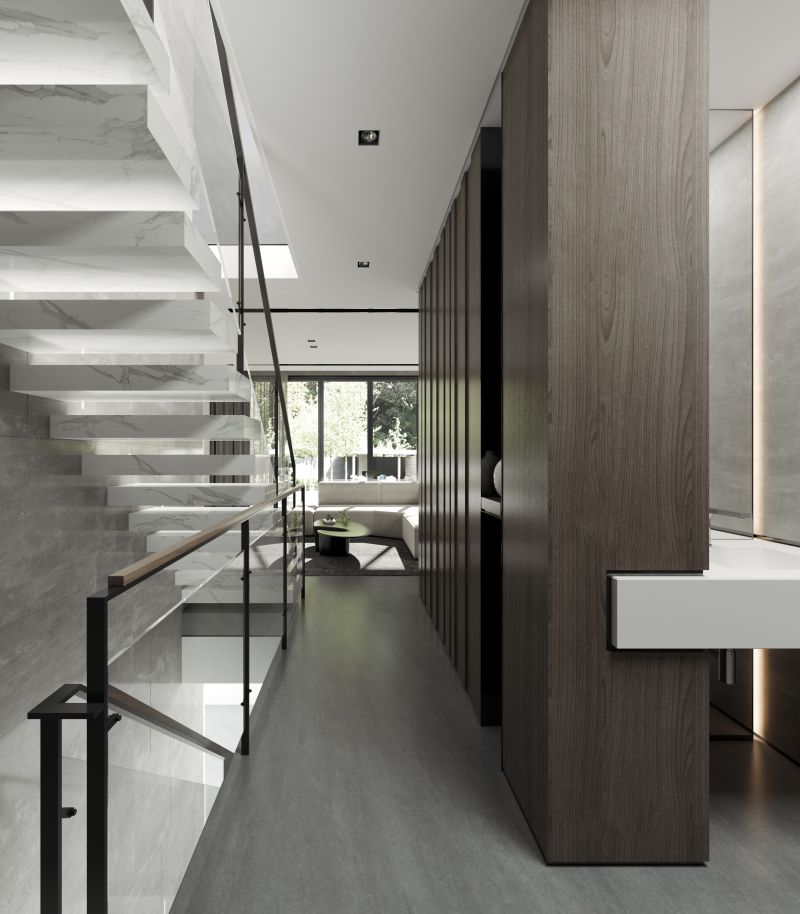 The principle of light and shadow with point, line and surface is embodied in the interior space to create an art space, and the abstract form is reflected in the interior space.