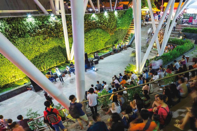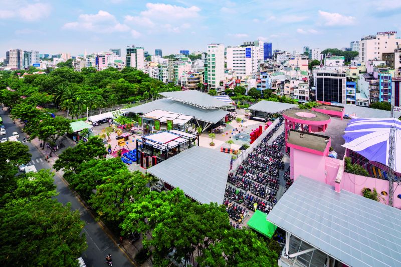 Green areas are rare in Ho Chi Minh City (Vietnam). "Colorful Zone" presents itself as an attractive exception. The project emerges as a green cultural and leisure hub in plain air that invites passers-by on the top level with its multifunctional pavilions with cafés and restaurants, on the lower levels with areas for retail, culture, gastronomy, entertainment.