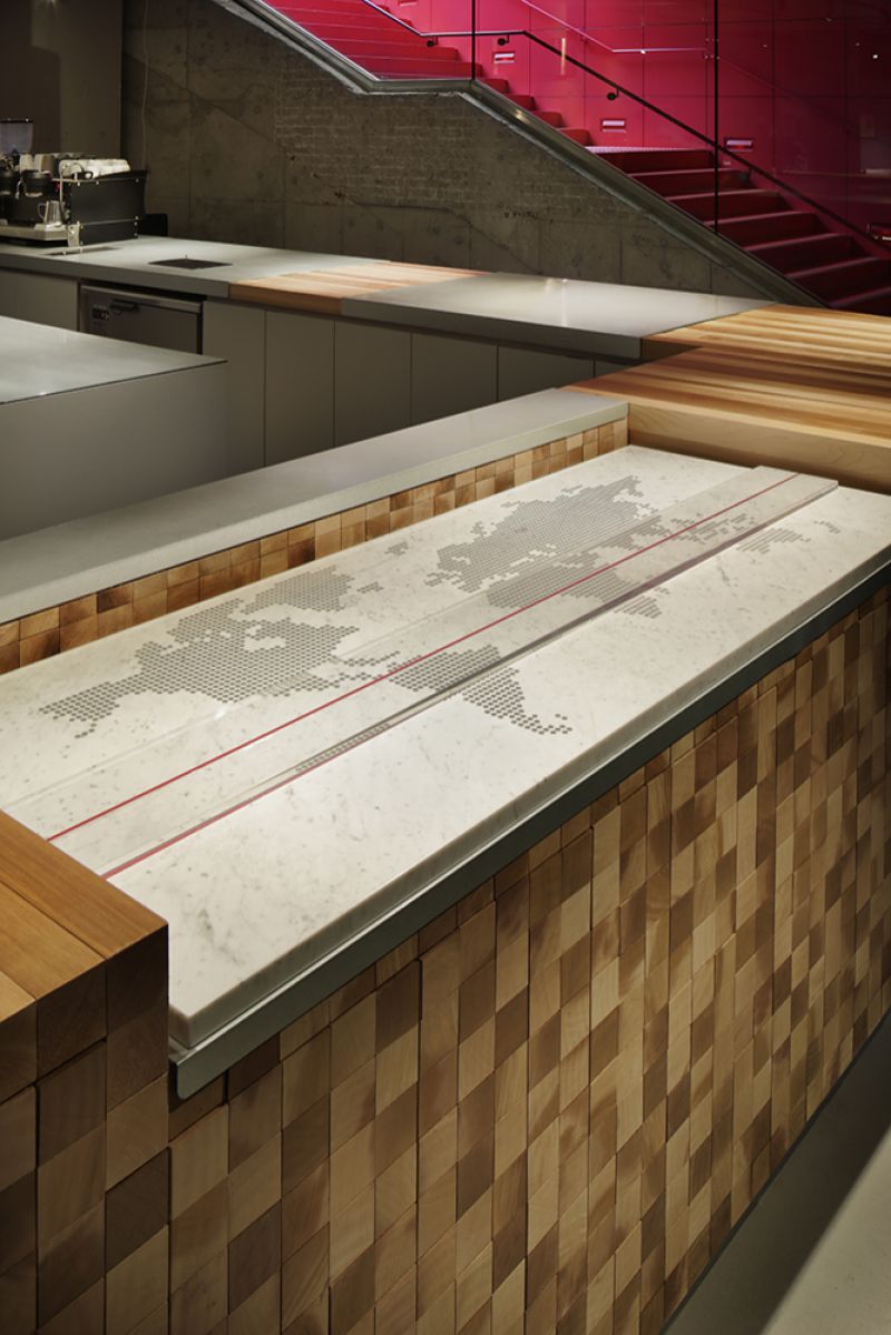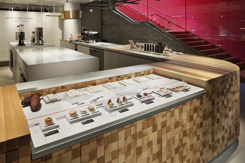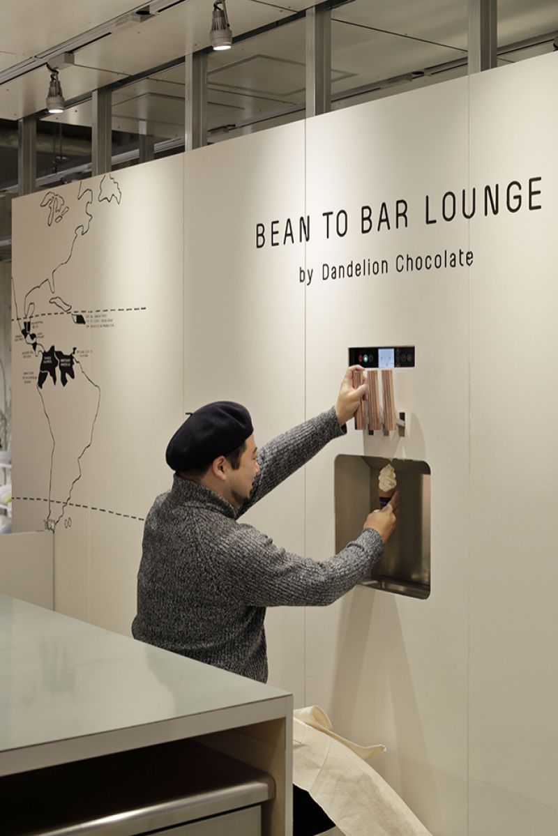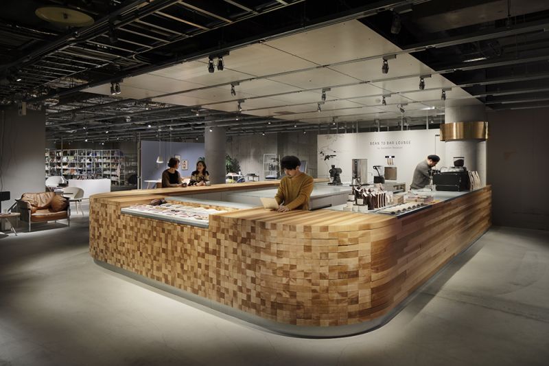 The most important element of this project was to bring out the best and unexpected charms of the materials used. I took inspiration from Dandelion’s approach to materials, especially their relationship to “cacao”, believing that was the best way to express the brand. As a way of showing the material, we stacked up a mosaic pattern by piling together pieces one by one like a parquet, making use of the essence of the “western redcedar” uneven colors. Despite using the same materials, by cutting them out, I was successfully able to vary the expressions depending on the viewing angles.