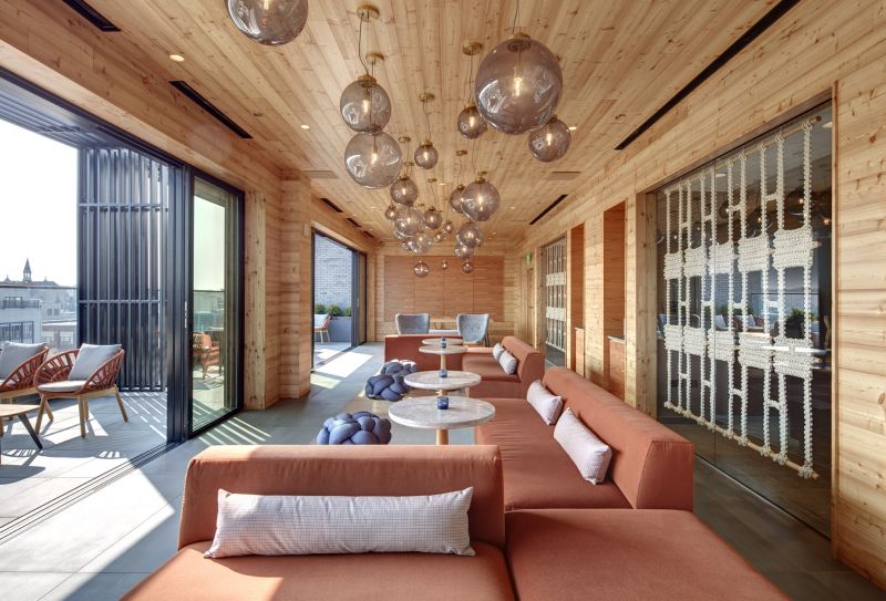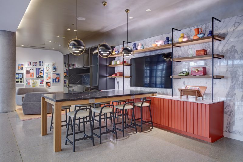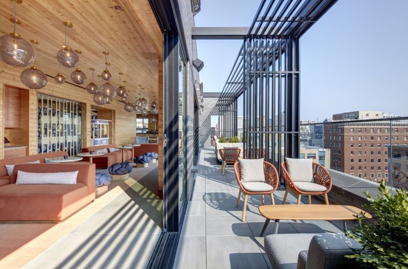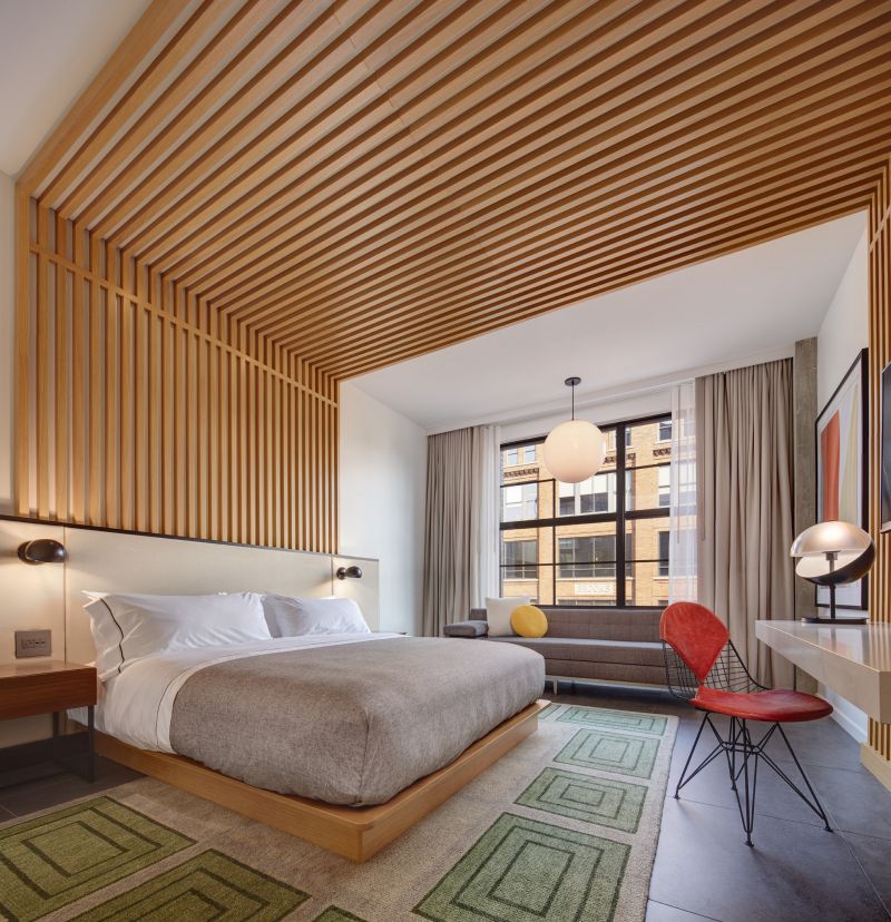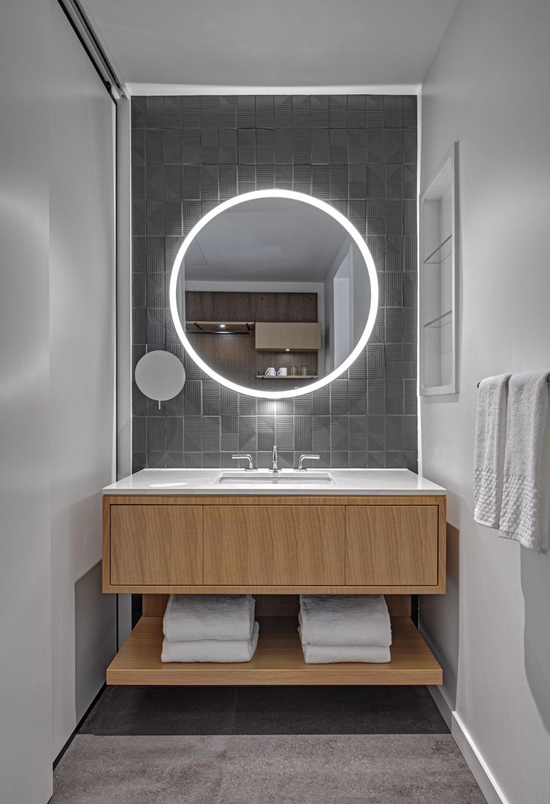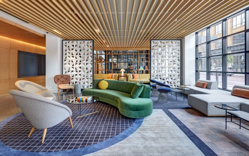 The design story of the Hilton Canopy Grand Rapids, is also the story of Michigan, the often overlooked true birthplace of American Mid-Century design and home to three iconic furniture brands including Herman Miller. In pulling from this rich history, the design team highlighted Mid-Century aesthetics in the planning, detailing and specifying of modern materials such as breeze block, wood slats, natural stone, terrazzo flooring, plaster finishes and iconic furniture pieces and then blended them with more contemporary elements to a create a fresh and current new modernism.
