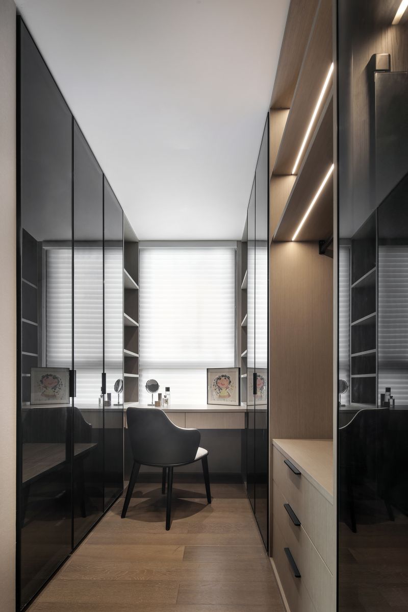 It is worth mentioning that the designer has designed customized storage space including garment cabinets, electrical appliances cabinets, bookcases, and other storage spaces according to the owners' needs, providing more than 90 cubic meters of storage space.