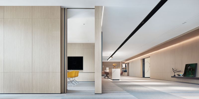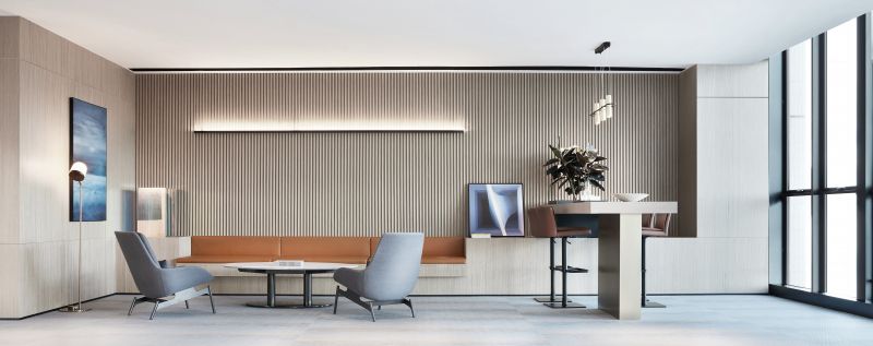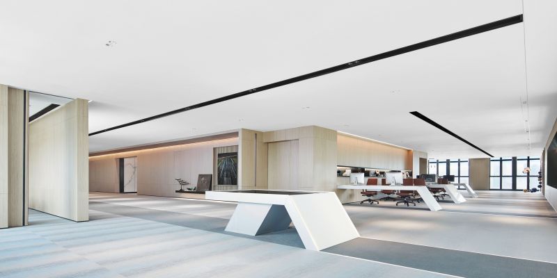 The project combines functions of marketing activities with the characteristics of times. In order to integrate the various needs of work, life and exhibition, the designer has created exhibition, negotiation, office and leisure areas, etc., creating an ideal benchmark for business life. According to the proportion of settled-in enterprises, the space is identified as the integration of rationality and art. As a characteristic element running through the beginning and the end, the straight line express the beauty of the spatial sequence,the extension and infinity of the thinking.