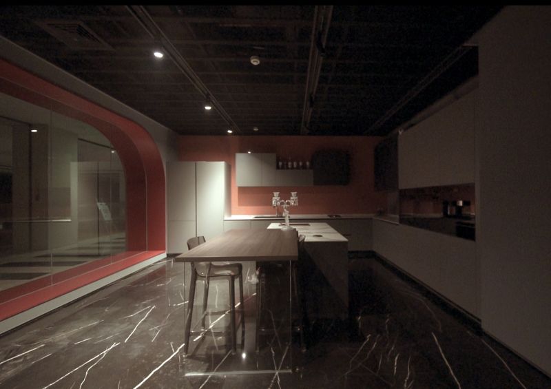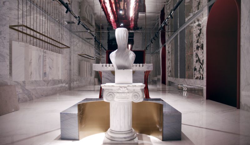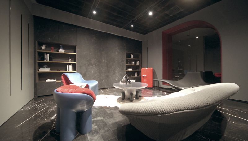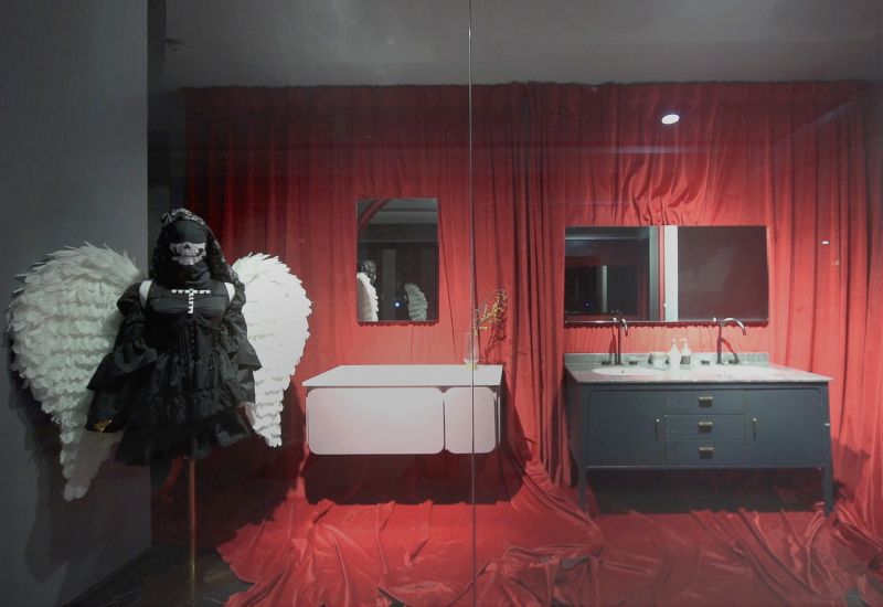 The collision of red and black, dark color throughout the whole design, this is not just a design of the exhibition hall, this is a "feast" to pay homage to fashion and art