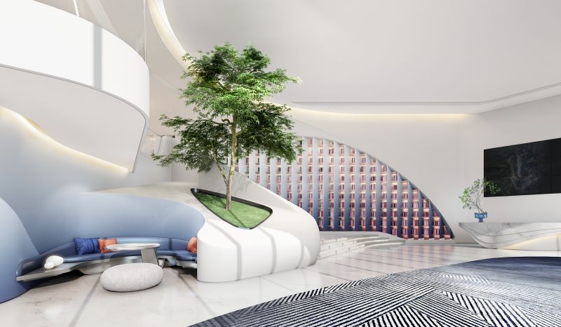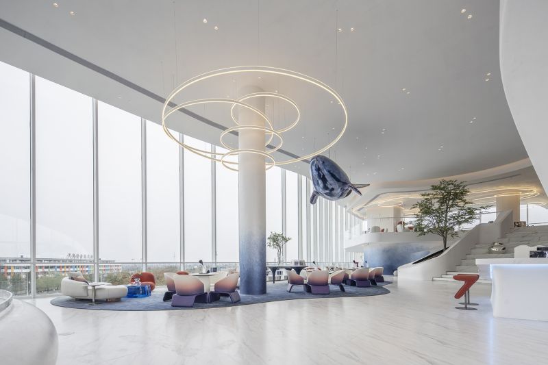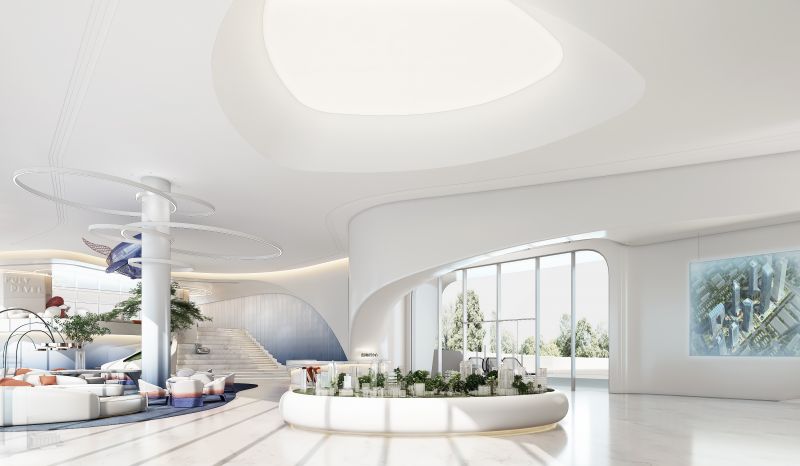 The indoor space is highly integrated with the surrounding environment and the facade of the building, combining natural elements with modern streamlined images, which is more internationalized while retaining the natural ecology of Changde.