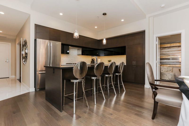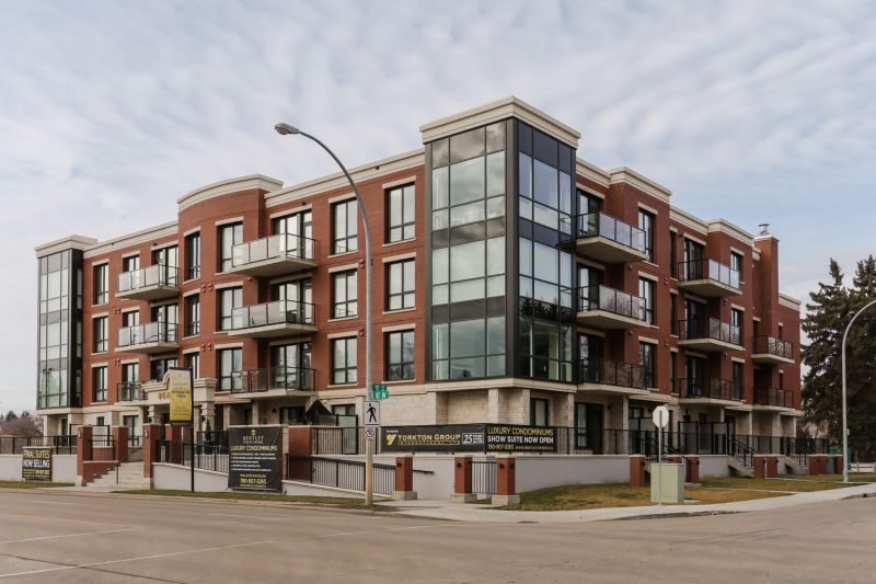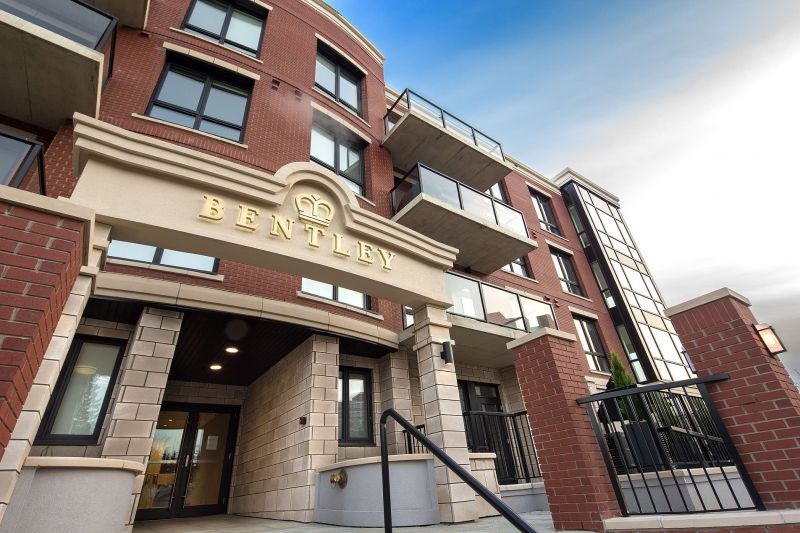 Bentley is a luxurious condominium that combines European elegance with state-of-the-art contemporary design and superior quality finishes. It is located in prestigious Windsor Park, adjacent to the University of Alberta. Solid concrete and steel construction, real brick and stone exterior for durability and longevity. Oversize windows and curtain glass walls provide excellent views. Condo units have double en-suites, steam showers, third bathroom, den. Units feature walnut or teak cabinetry, quartz countertops, floating vanities with LED lighting, hardwood floors, plush bedroom carpeting.