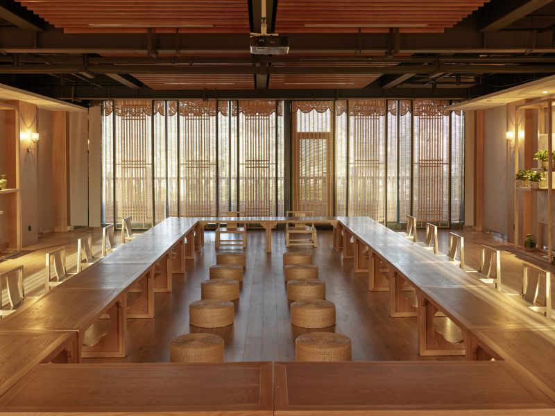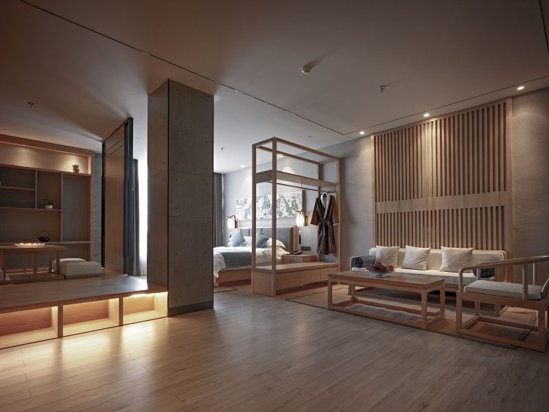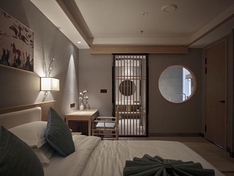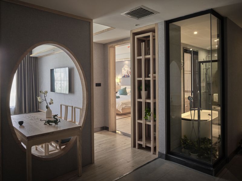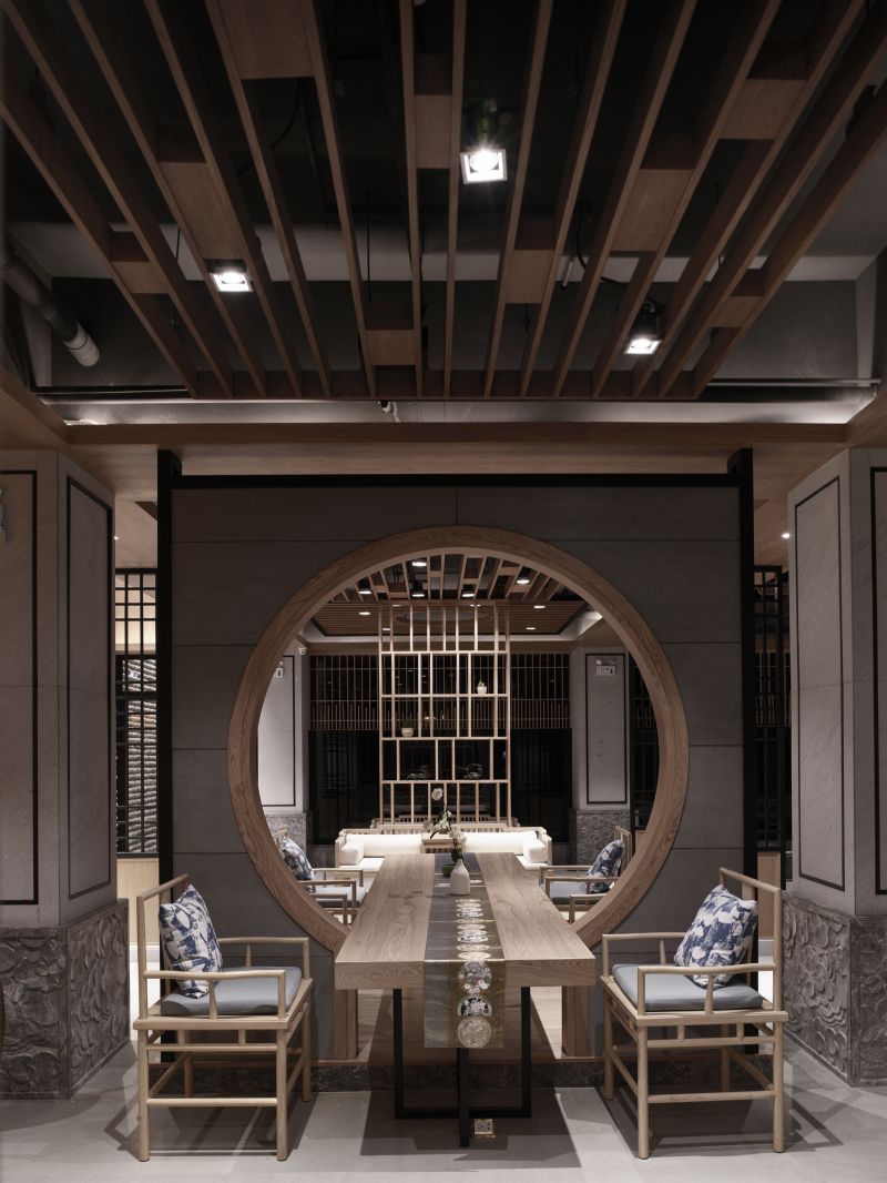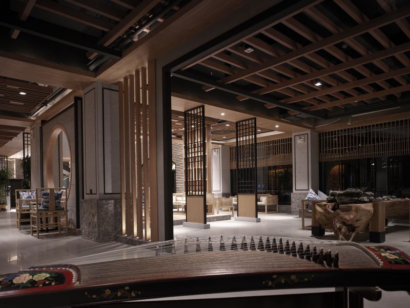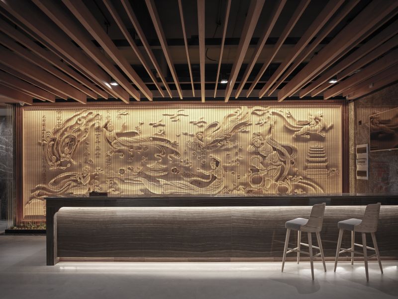 The doorway adopts the thinking mode of modern architecture, extracts the image of streamer from the flying fresco and extends the regular body, plus the commonly used arch fighting elements in the local architecture, through the structural change, the two are integrated. In many parts of the room, niches are used to outline the rich and not fussy space atmosphere, but also to interpret the many regional characteristics of Dunhuang Grottoes.
