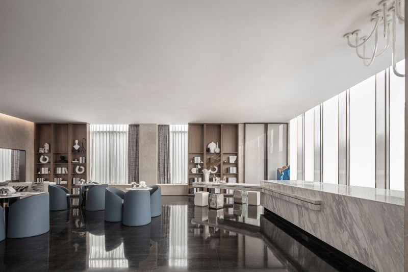 The design is based on local thinking and creates an immersive sales space. The building is shaped like a cabin, parked in the city, and infused with new visual installation art in the traditional heritage. The design takes a holistic thinking and creates a landscape of sea fishing with a minimalist method, creating a clear and open penetration pattern, which makes the scene and object fit, and the interaction between people is smooth and rich. The multiple aesthetics of the space borrows the texture expressed by nature and different materials.