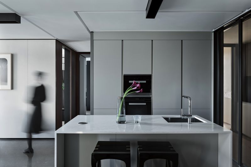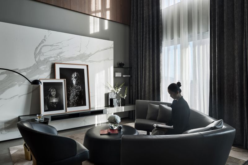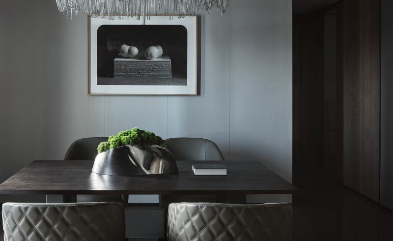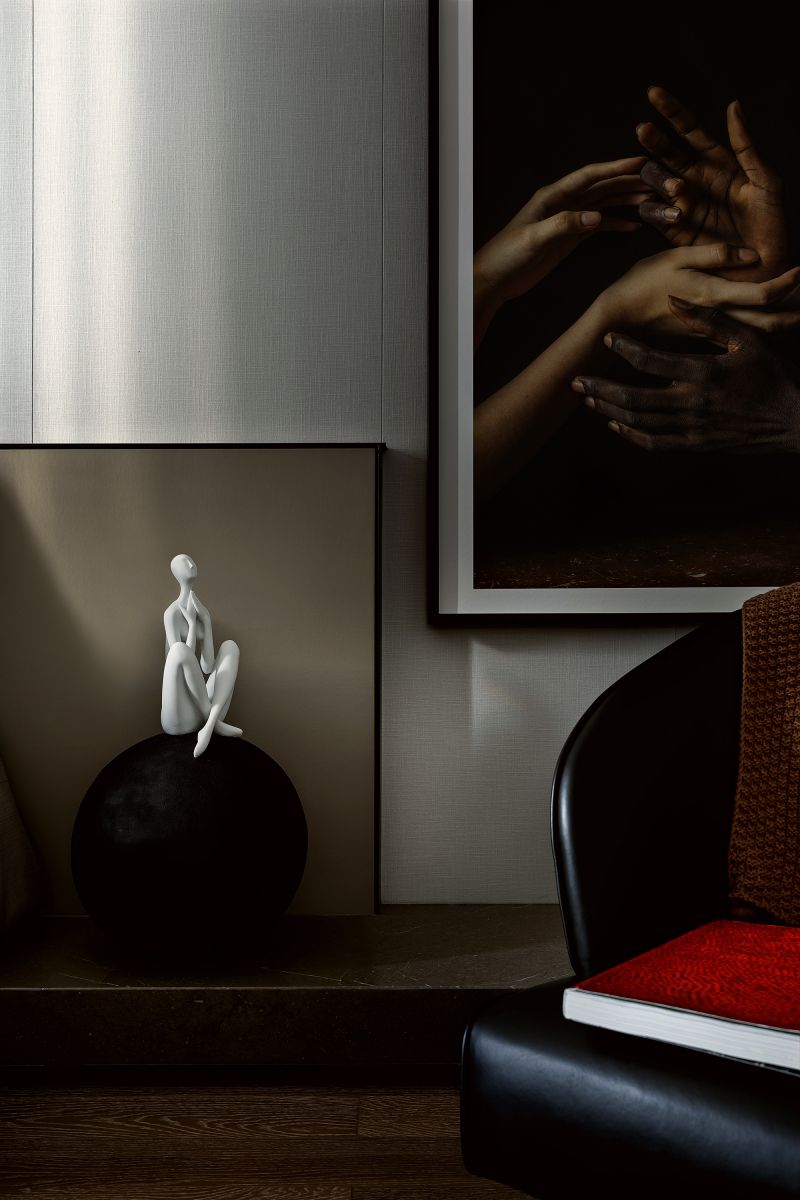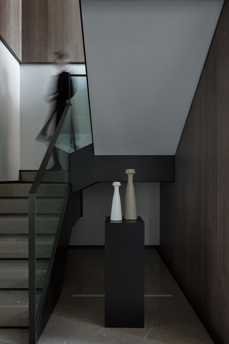This case is a 243 square meter double-layer model room with a wide view. The designer uses metal, stone, leather and other materials to create simple and powerful spaces, and creatively uses contemporary art to transform art, materials, light and shadow into a unique visual language. The entire space is free and relaxed, and has a natural, clear and harmonious proportional relationship. Under the change of light and shadow, the "light" of art also guides the inner exploration of residents.