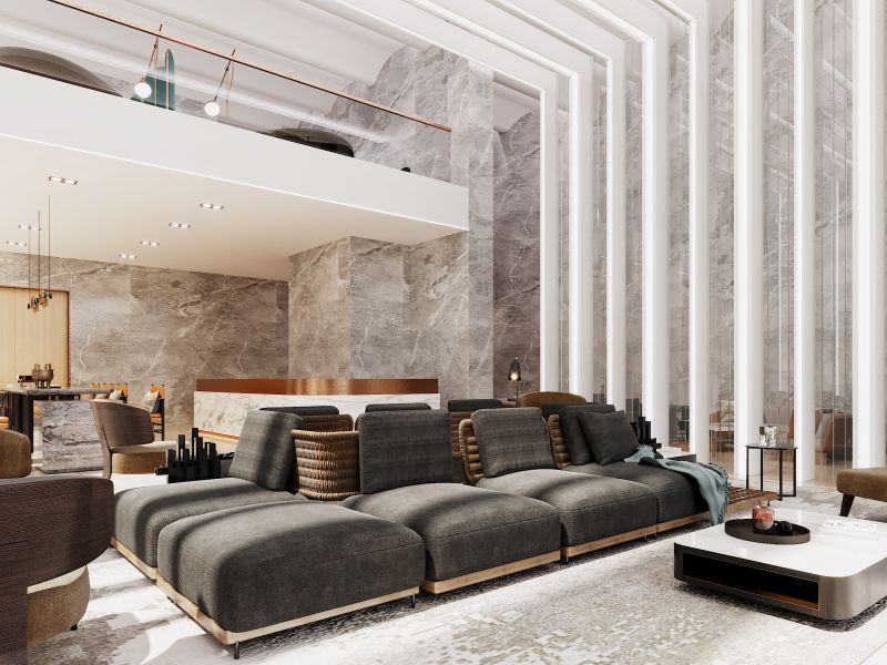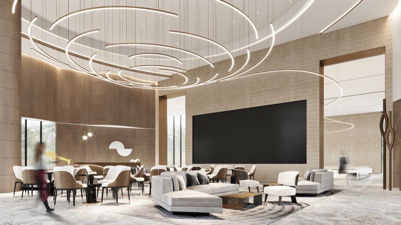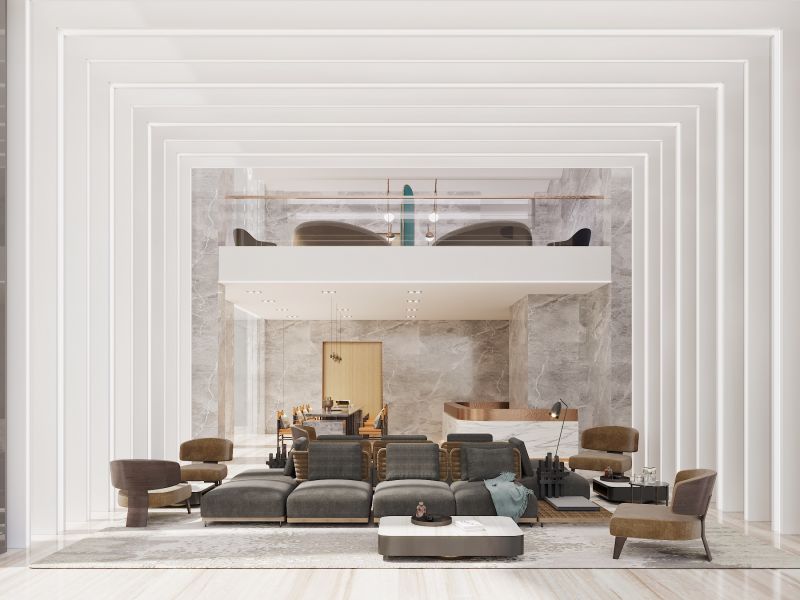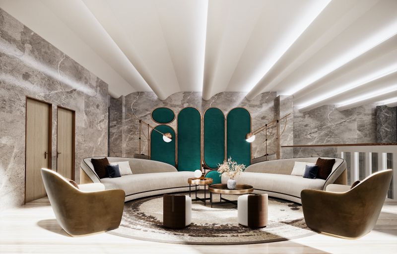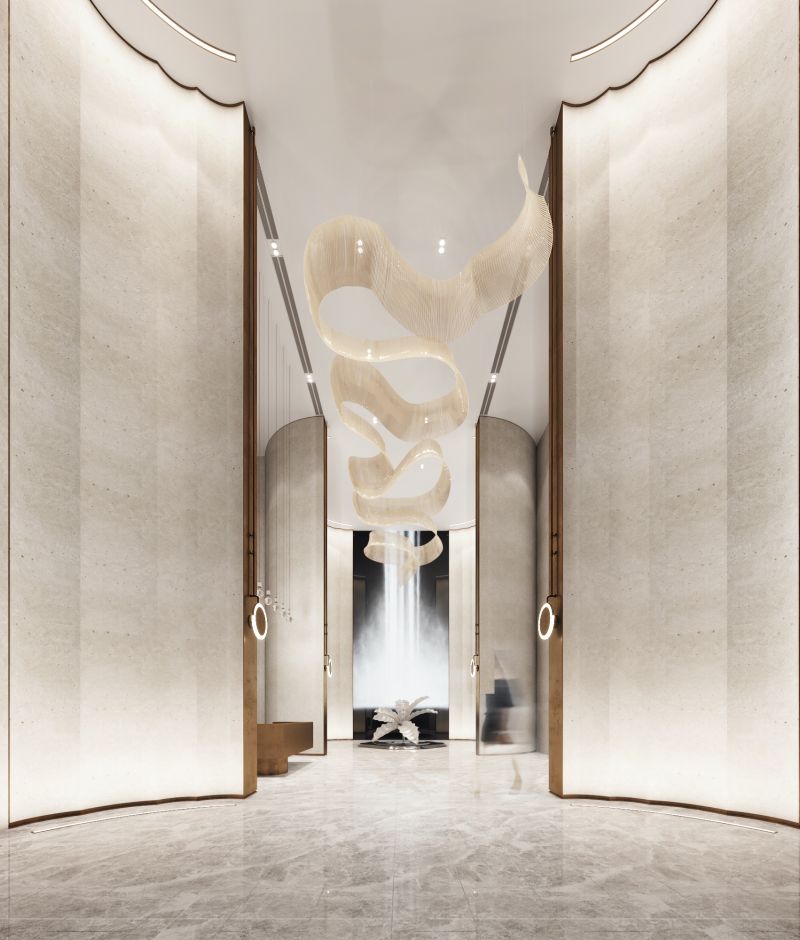 In a gallery-like atmosphere, the rhythmic ribbon is both an artistic guide and a space guide. Taking the ribbon as the clue, the spatial moving line passes through, and the spatial transformation is completed with the traveling streamline.