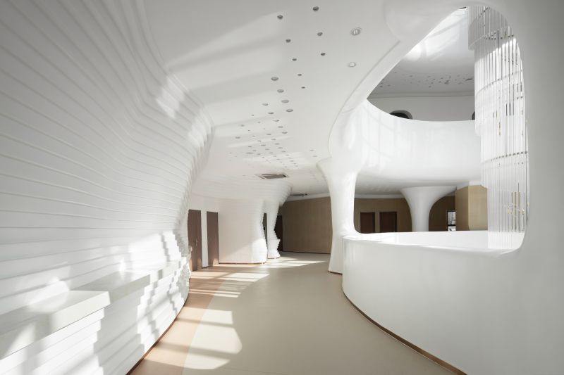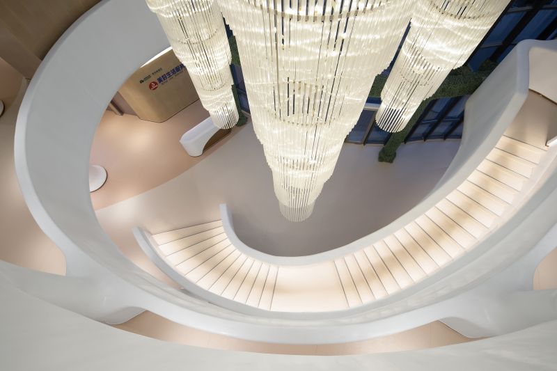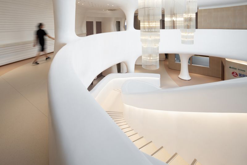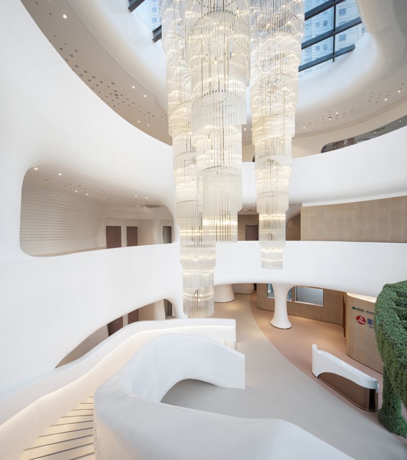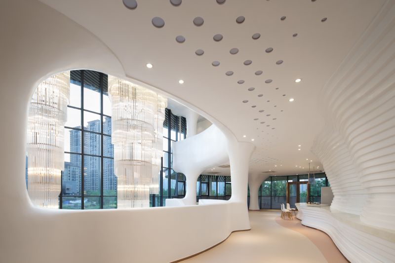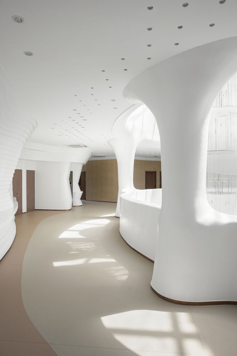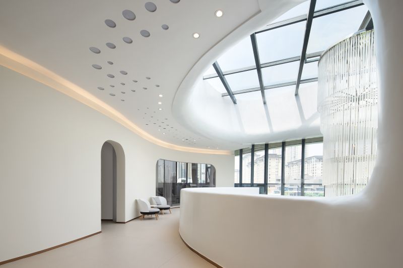 The main body of the space atmosphere is white with fresh and elegant color. White and wood color cooperate with green plants to create a pure indoor space, which not only meets the requirements of medical space atmosphere, but also has the design effect. A large area of white wall lay the main color of cold space, giving people a clean and quiet feeling. The wood color wall decoration and plastic floor neutralize the sense of coldness and enhance the visual temperature of the space bit by bit. In addition, small area use of green as embellishment, active space atmosphere.