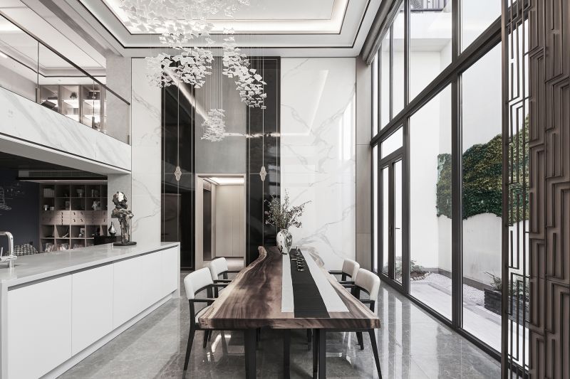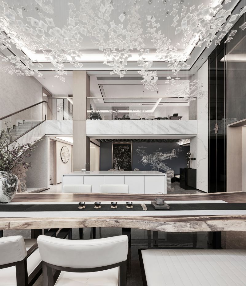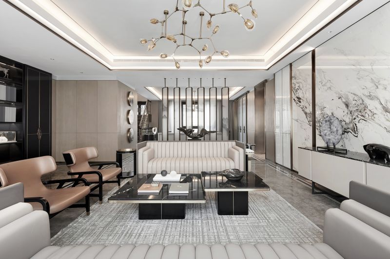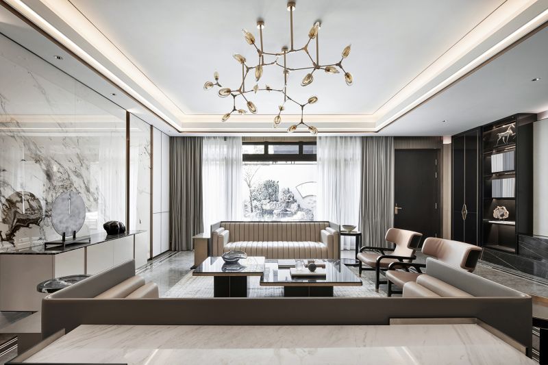 The project provides a perfect living space that caters to the demands of those who aspires to live a poetic life. This model villa brings in elements of mountain, lake and cloud, and showcases a serene, elegant ambience.