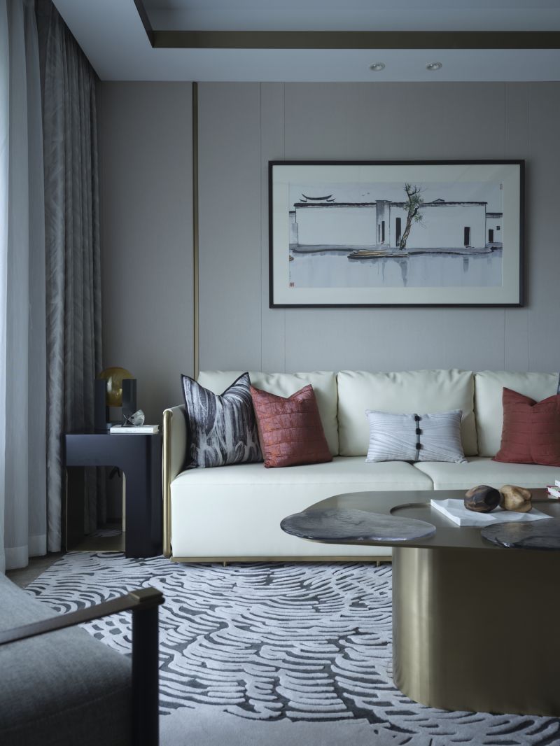 Yixing in Jiangsu Province is a city as gentle as literati in Jiangnan (regions south of the Yangtze River), charming and elegant. The designers drew on simple lines to show the flexible ambience of the local region and used an artistic concept to create an elegant living space. The designers intended to create a “quiet” and “plain” residence where occupants can purify their minds and return to a pure inner land.