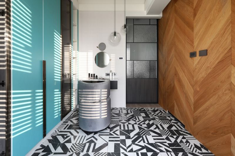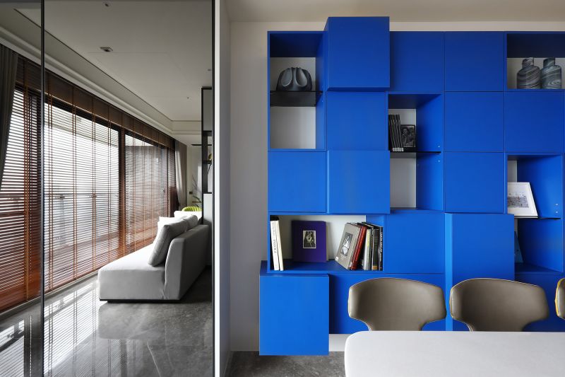 This design project utilized large areas of blank spaces to highlight the house owner’s indulgence towards flourishing color tones, where the bright pure blue color flash treatment of the key area depicts the visual contours with a strong personality, guiding the rhythmic leaping ambience of the space, hoping that the homeowner can embrace colors with the lights and shadows to live in the bright space enriched with vitality. With the embellishment of the warm veneer wall and carpet, a leisurely and comfortable tranquil ambience is demonstrated alternatively.