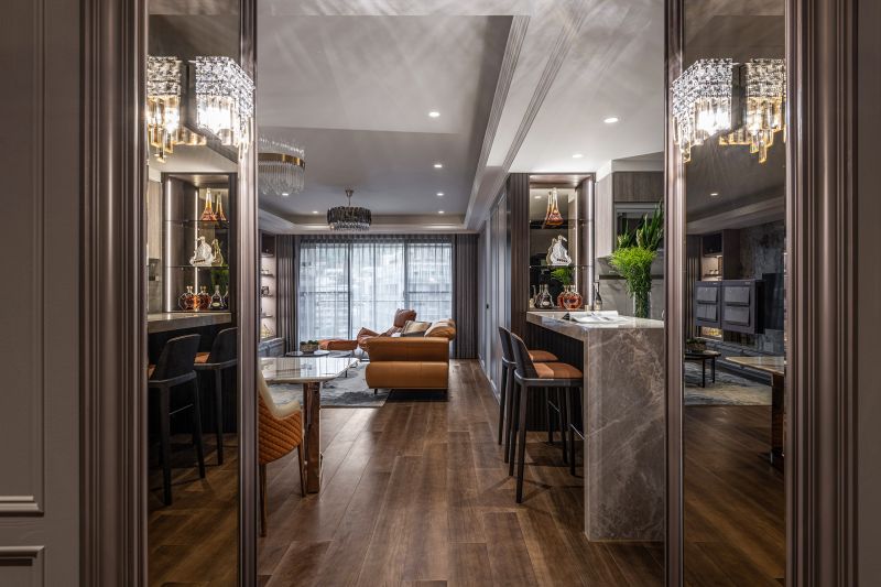 Two different classical layouts of introverted gentry European style and fresh elegance charm respectively overflow from the exclusive spaces of the husband and wife. Further perfectly interweave to result in the refined and warm situations of the public areas. Brilliantly manifest the harmonious ways of getting along with family fellows, while stating everyone's distinct personality.