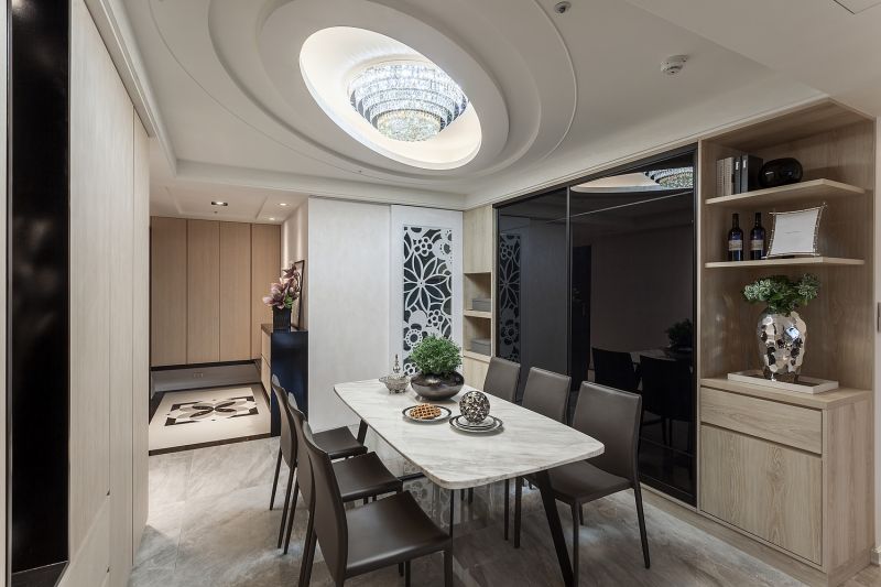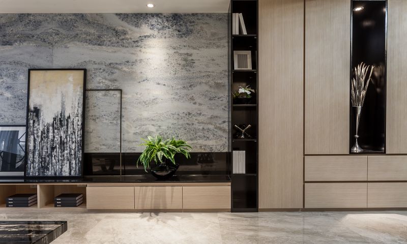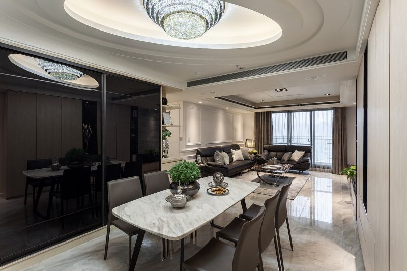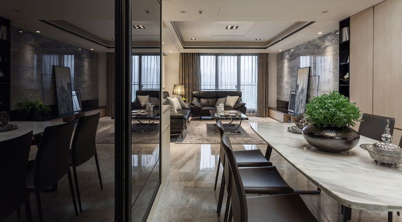 As a traditional Taiwanese residential construction, this space is designed for parents of three children. Once entering the entrance, one can immediately see the living room and the kitchen extends the whole public space till the French window. While diverse patterns of stone materials are the basis of the public area, and textile functioned as details to soften the firm and steady spatial perception. Ingenious lighting design on the recessed ceiling makes the space a bit higher. As for the private space, the designer creates different vibes for each resident based on their personalities.