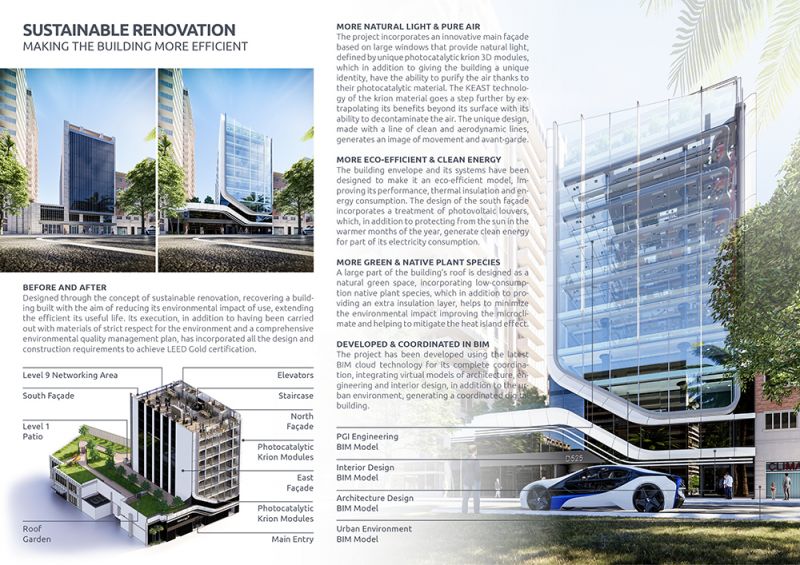 D525 Barcelona was designed through the concept of SUSTAINABLE RENOVATION, relying in 5 axes: