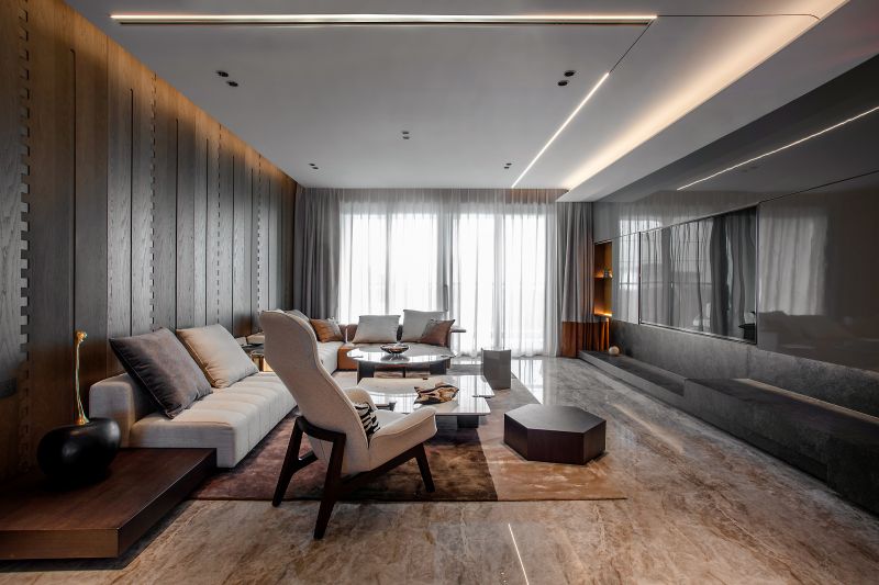 The design inspiration of this case comes from how to comprehensively explain the concept of "home" with design vocabulary. This is a high-rise private house. The owner is an elite person engaged in the construction industry. After enjoying all kinds of residences and forming "aesthetic fatigue", he increasingly pursues the simple emotion hidden in the design techniques. Therefore, the design team aims to find out the owner's inner "sense of belonging", abandon the artificial display, and build the project into a residence in cloud hidden in the prosperous city.