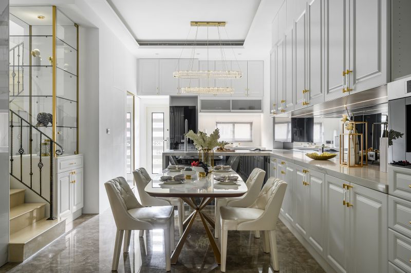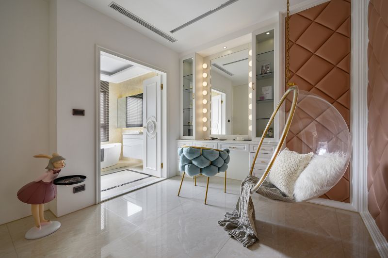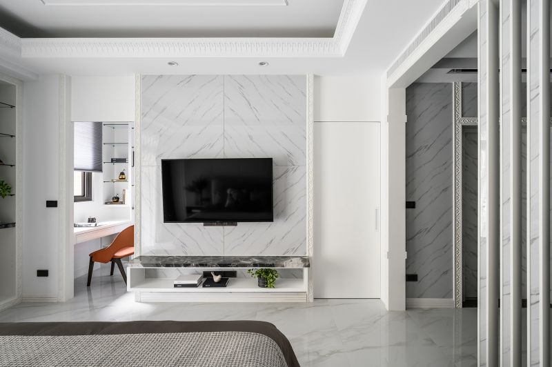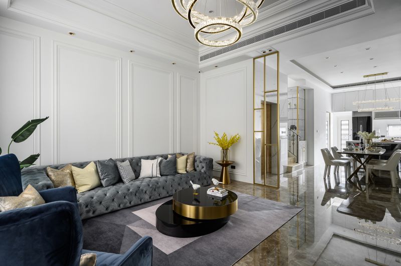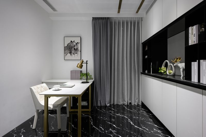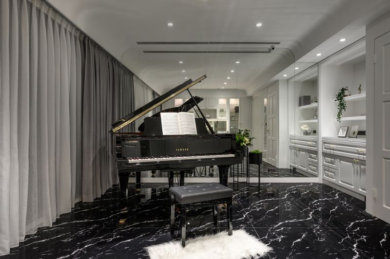 Colors and lines are the key elements and aesthetic features of this space. The high ceiling is decorated with arc shapes, metal trims, and delicate carvings to send out a unique and exquisite vibe. Meanwhile, the open-end public area is spread out with classic low-chroma black, white, and gray colors. The room is decorated with a mix of stone, wire panel, metal, and high-transparency materials, as well as exquisite furnishings and gorgeous lightings, which have all embodied the modern and classical overall style.