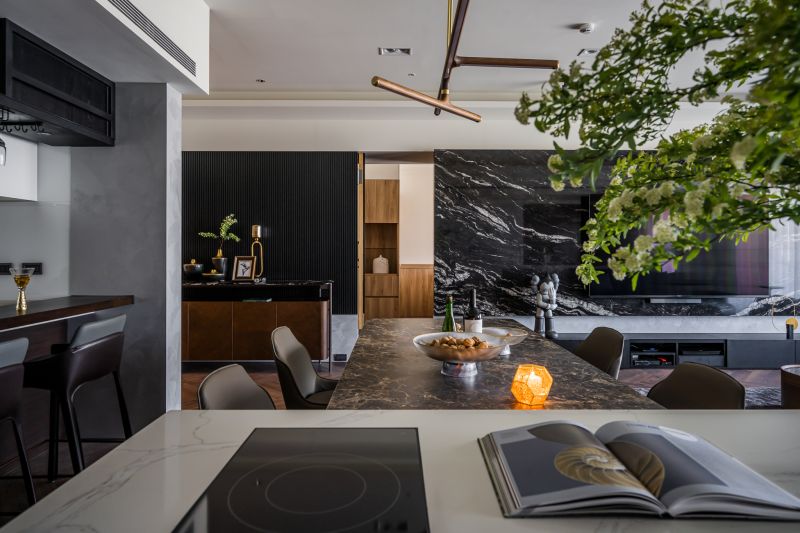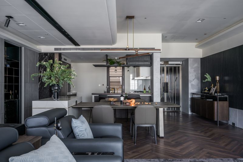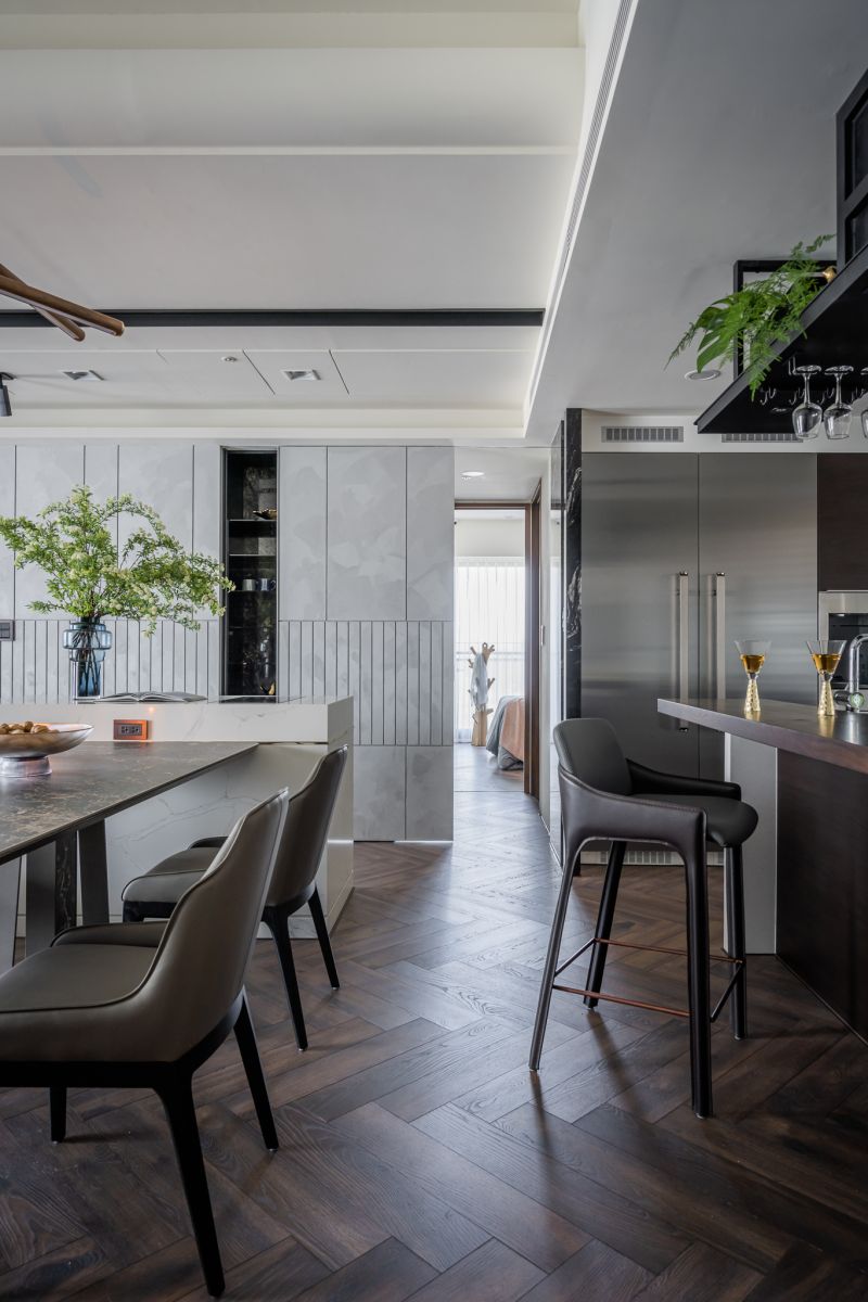 This project is a newly constructed single-story residence, with an area of around 300m2 as documented in the title. The adjustment of the layout was conducted during the initial phase of the planning, creating the ideal special efficacy for the user, including altering the original four rooms into three rooms with an enlarged master’s bedroom; secondly was combining the different sections of storage management to highly satisfy the indispensable demands of a large capacity and orderly storage for modern quality housing.