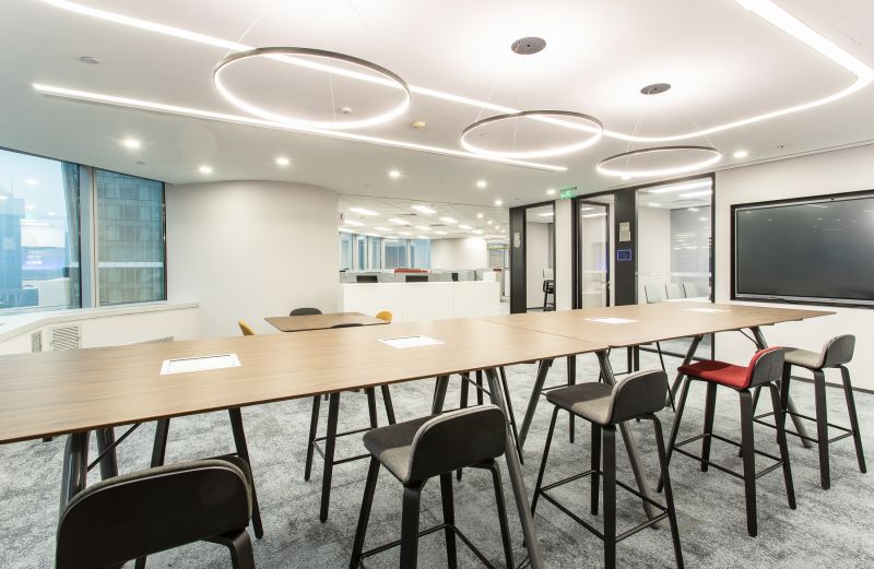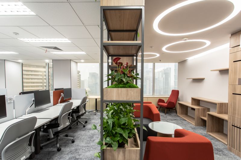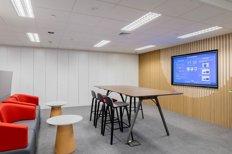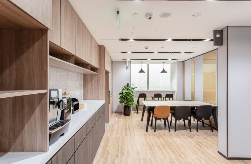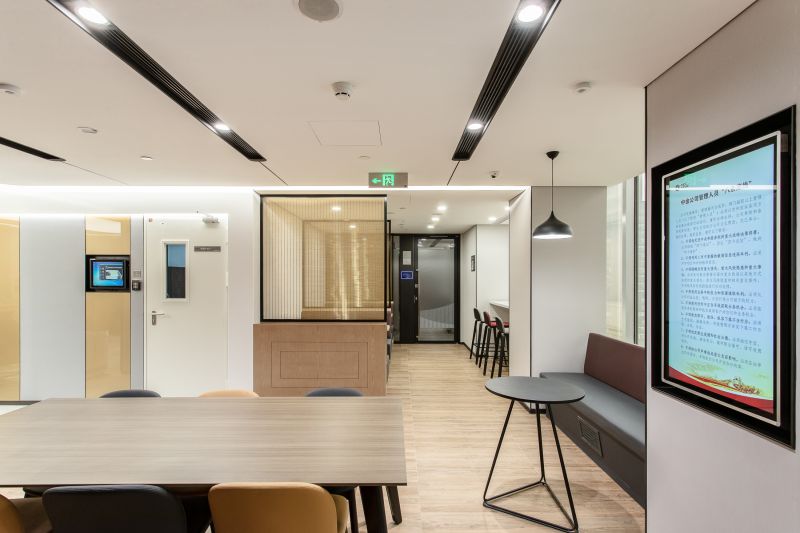Concept of multiplicities of spatial structures including individual, group, and open-scheme office and multi-purpose areas to work together in a variety of methods are realized and arranged in a flexible configuration in this CICC Beijing office. Collaboration area is located at different corner area to encourage having social integration among the staff which provides a relaxed and inviting environment. Linear LED and pendent lightings are installed at social area to accentuate a contemporary ambience. extensive use of wood and warm tone material gives a welcoming and relaxing atmosphere.
