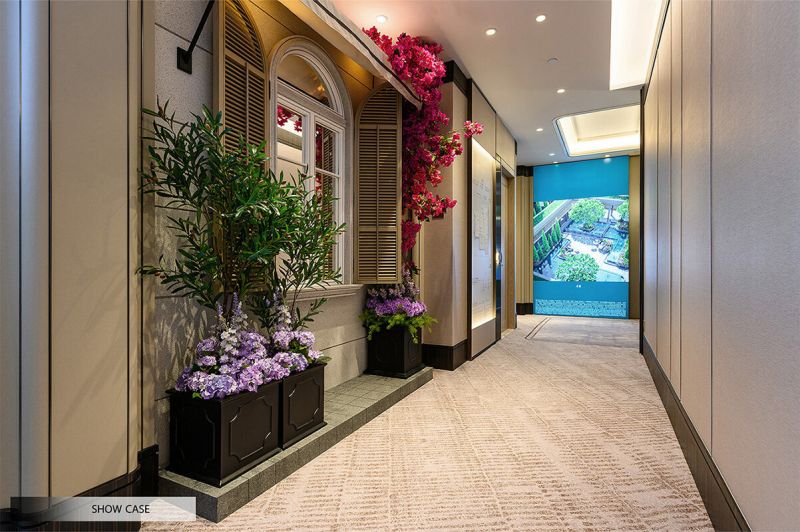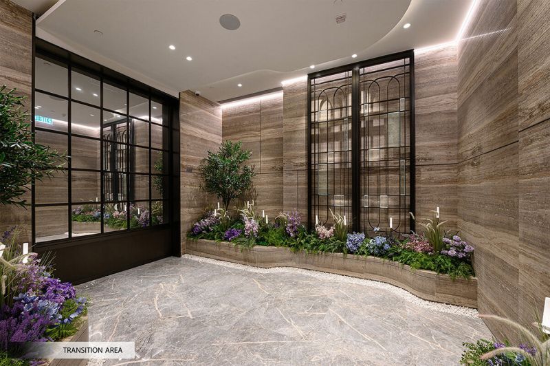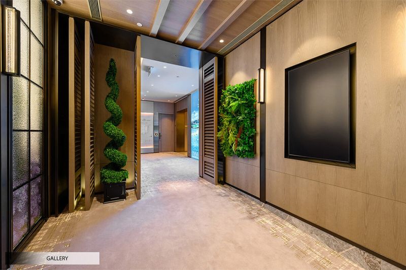 The project uses a combination of earth colors, natural elements and natural materials together with its unique properties of tall ceilings, not only does it brings out sense of nobility, but also complement the elements and features on each wall, mellowing down the vastness of the space. Different colored wood grain wall-finishing form a mountain pattern, as well as the shimmering feature glass wall, highlighting the theme of Italian manor style and Lake Garda. The result is a noble, manor-like apartment taking cues from LOHAS Park’s surroundings.