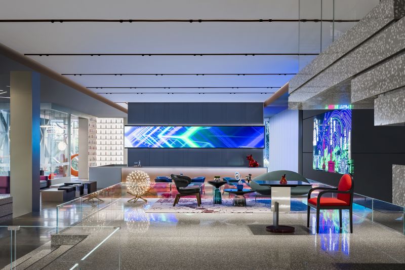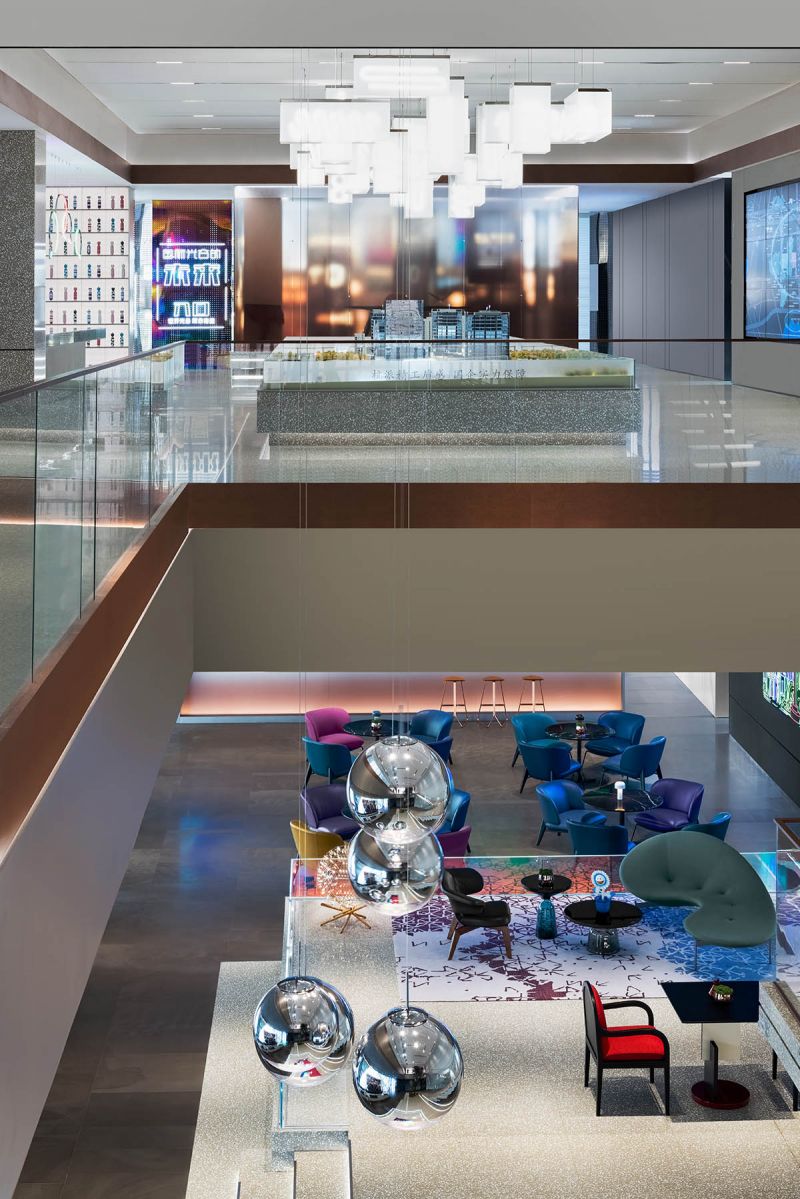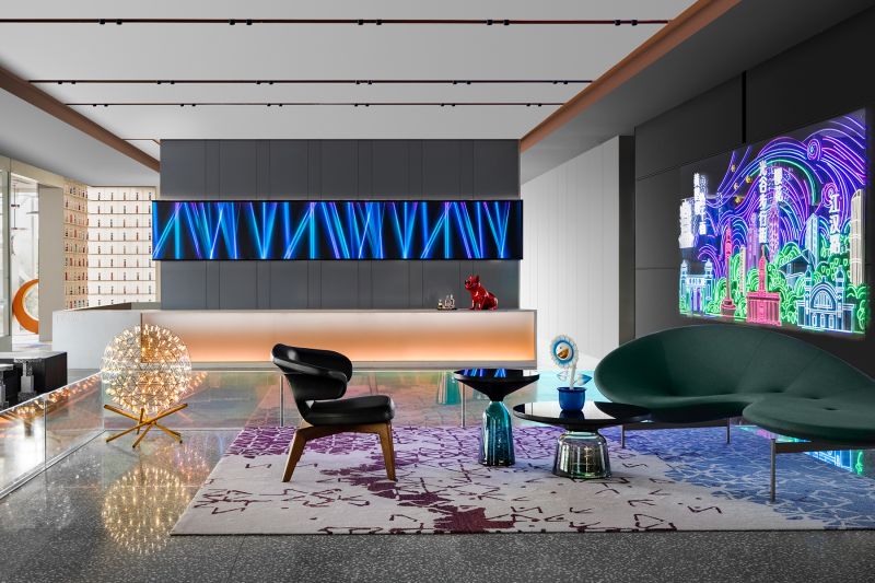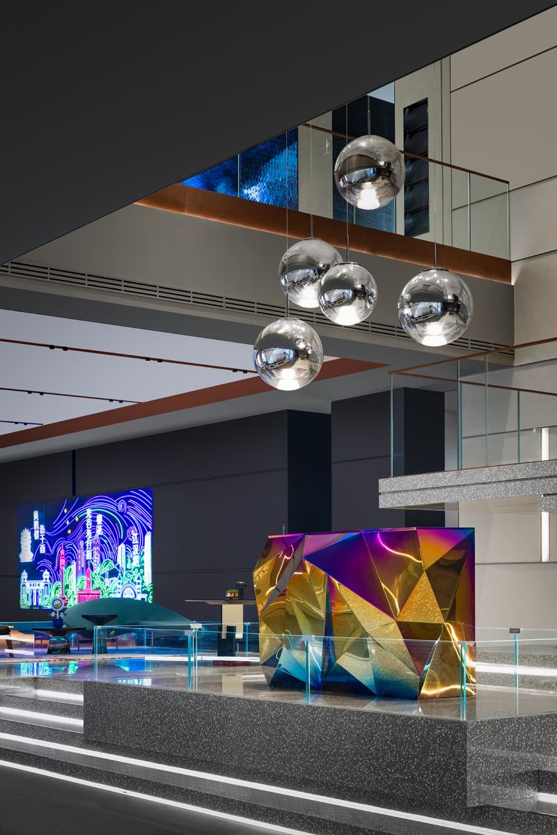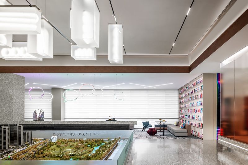 This sales center design, which gives full play to the city charm of Wuhan that embraces openness and inclusiveness, thus letting visitors have an immersive experience in this artistic city. The design takes inspiration from lights and integrates multiple materials such as laser in an ingenious manner. The simple geometry shapes echo with the delicate lines. The prism-bright art center magnifies the power and strength of the young and embodies the promising future. The art installation also conveys the lifestyle of Wuhan that combines art, human touch and nature.