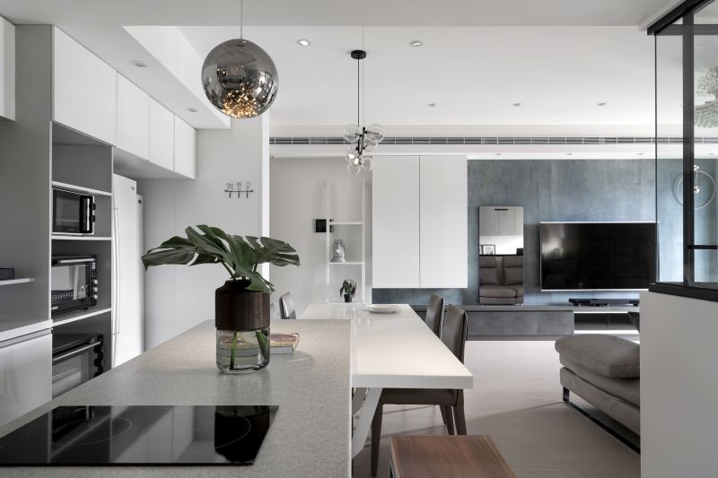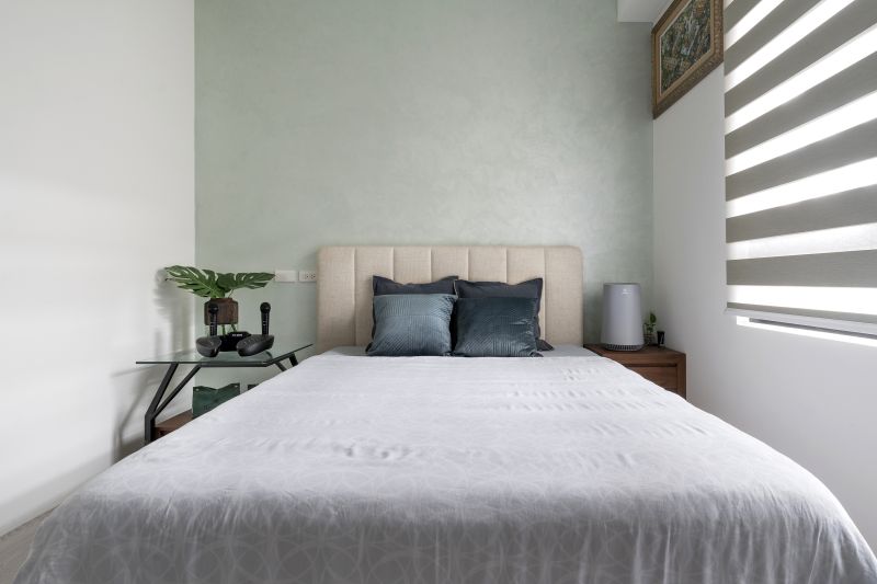 The delicate, pastel blue color palette complements a clean, concise layout, gently soothing the tired body and mind, calming the vigorous spirits, and happily delighting within the stable home.