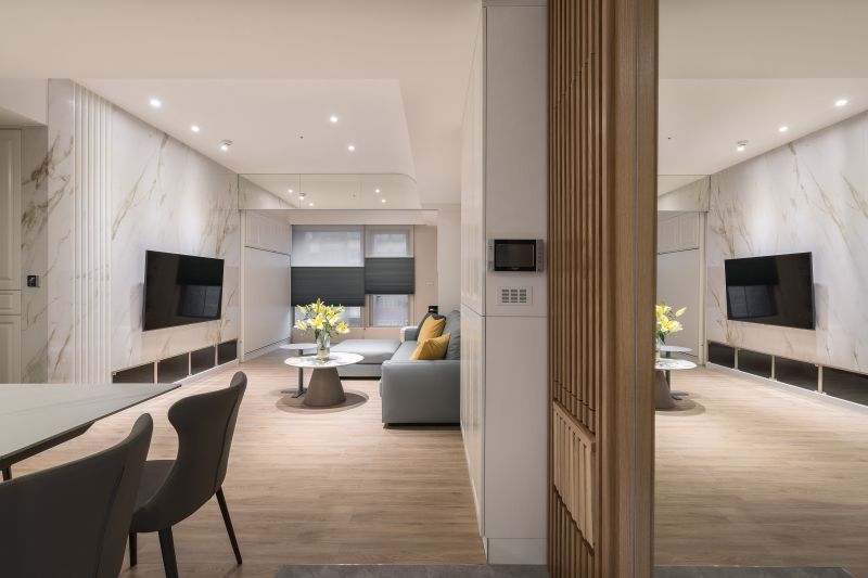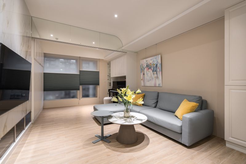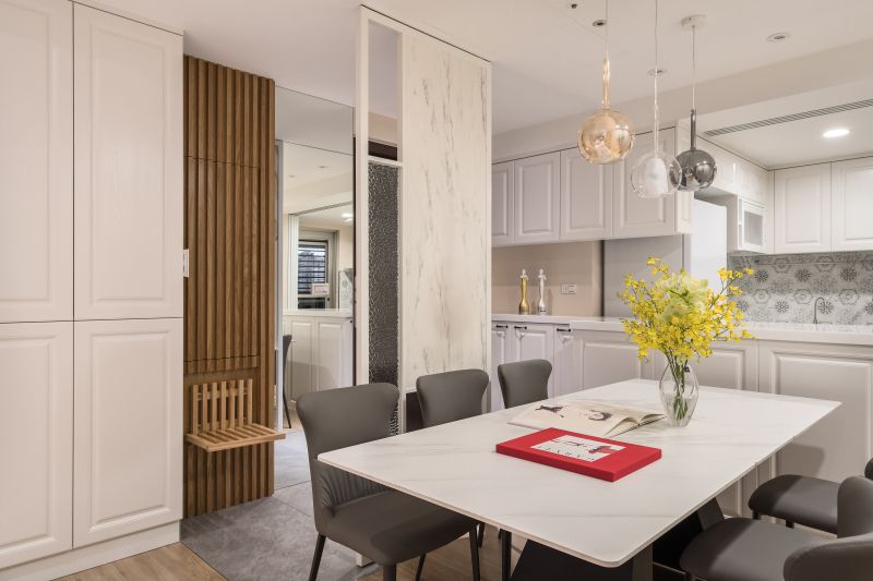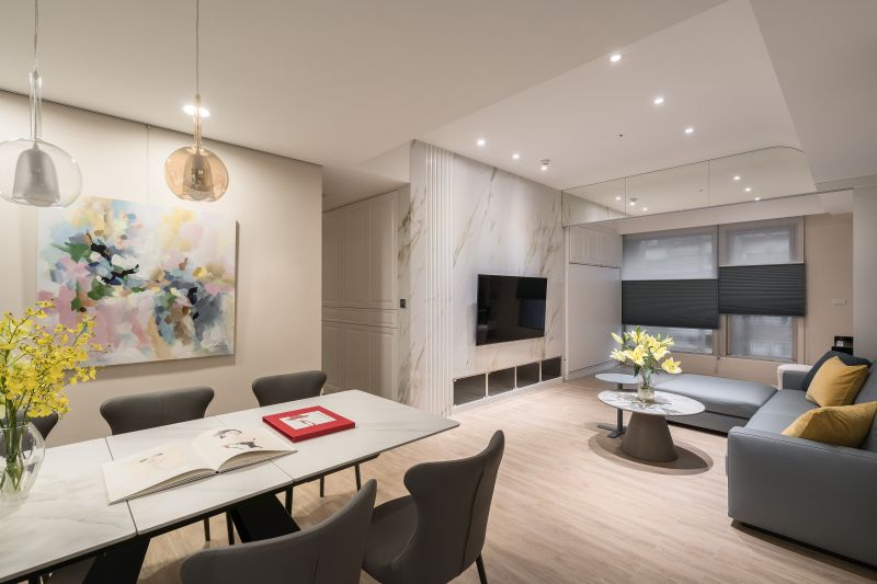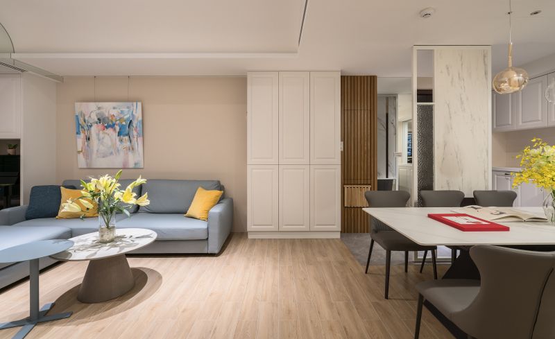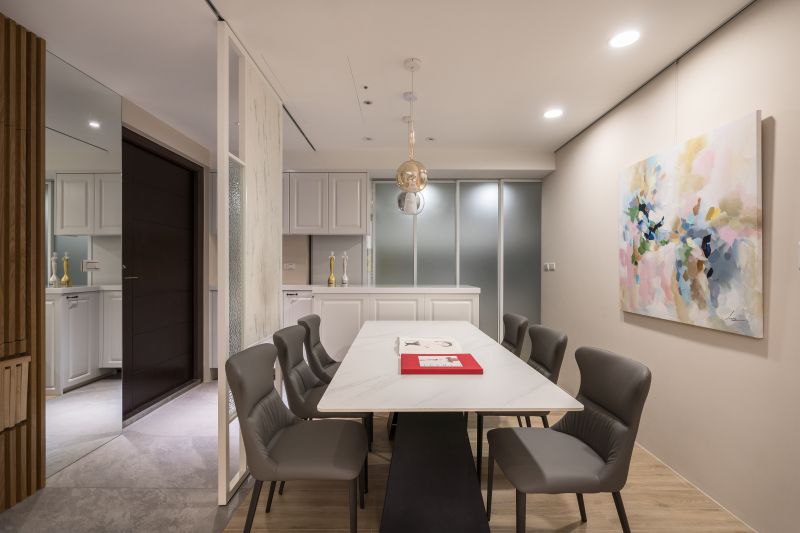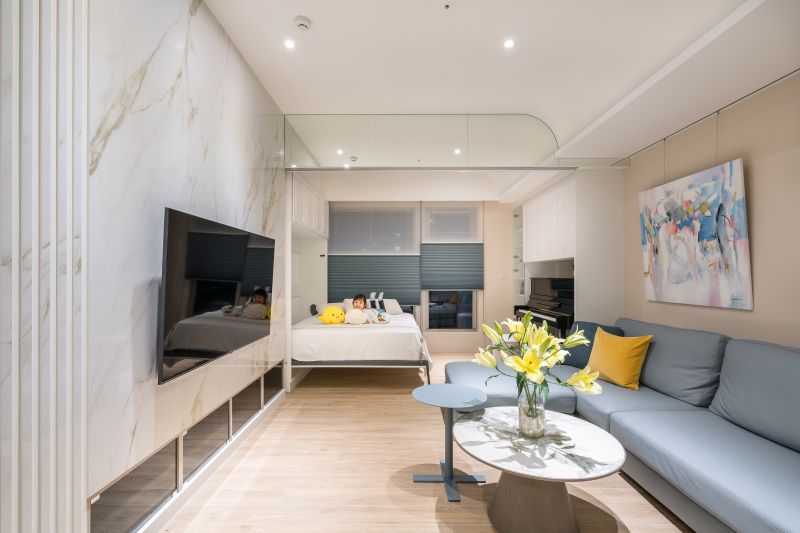 Re-configure the original layout to add a spare guest room to meet the homeowner's needs of receiving relatives and friends. Furthermore, we knocked down the solid wall of this area and installed sliding doors to introduce daylighting to the shared field and maintain the flexibility of the space.